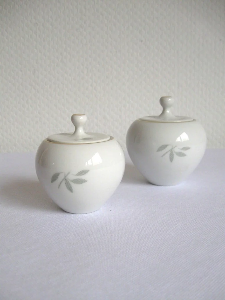 The cans have a lid and are decorated with a gold rim.