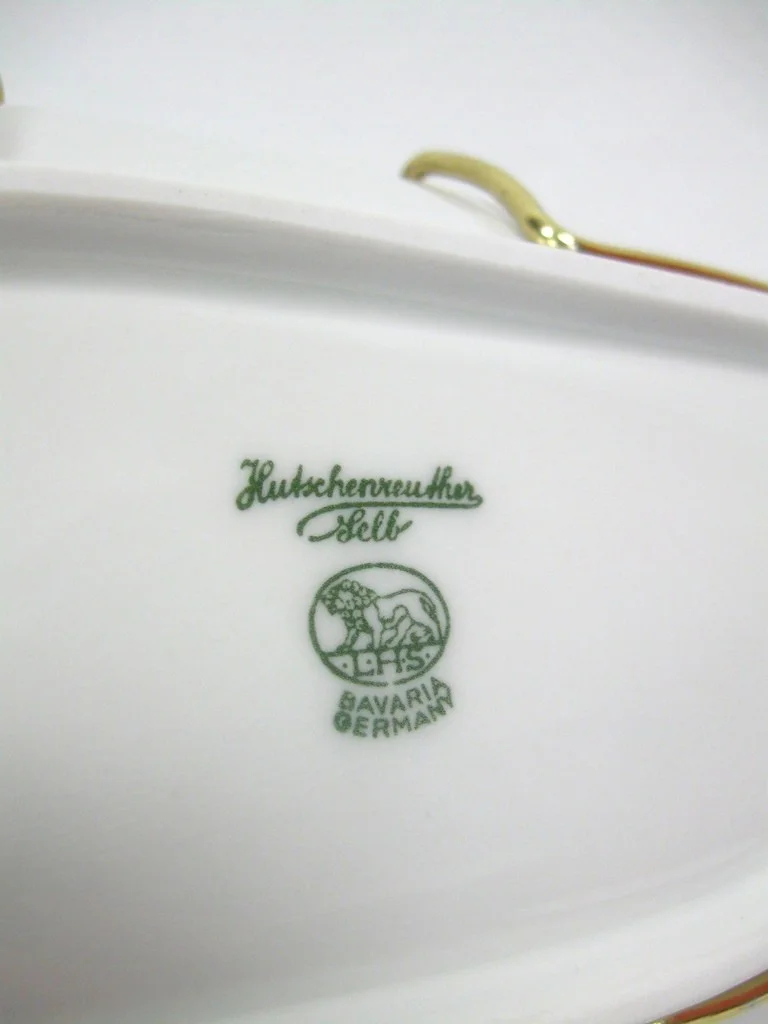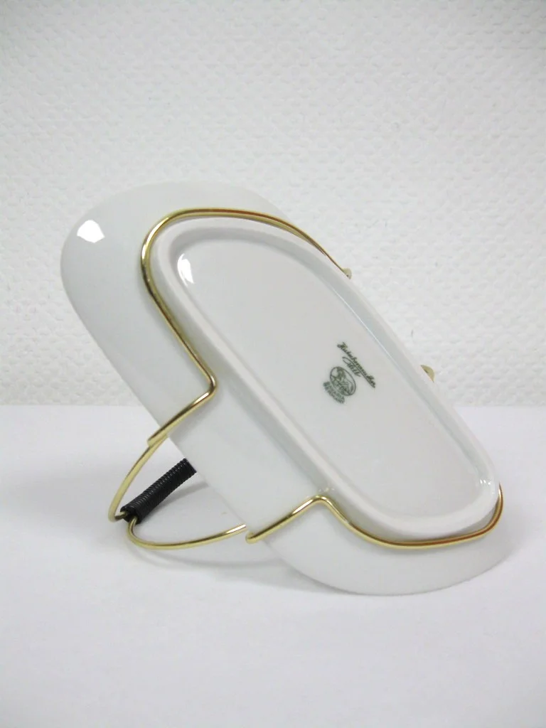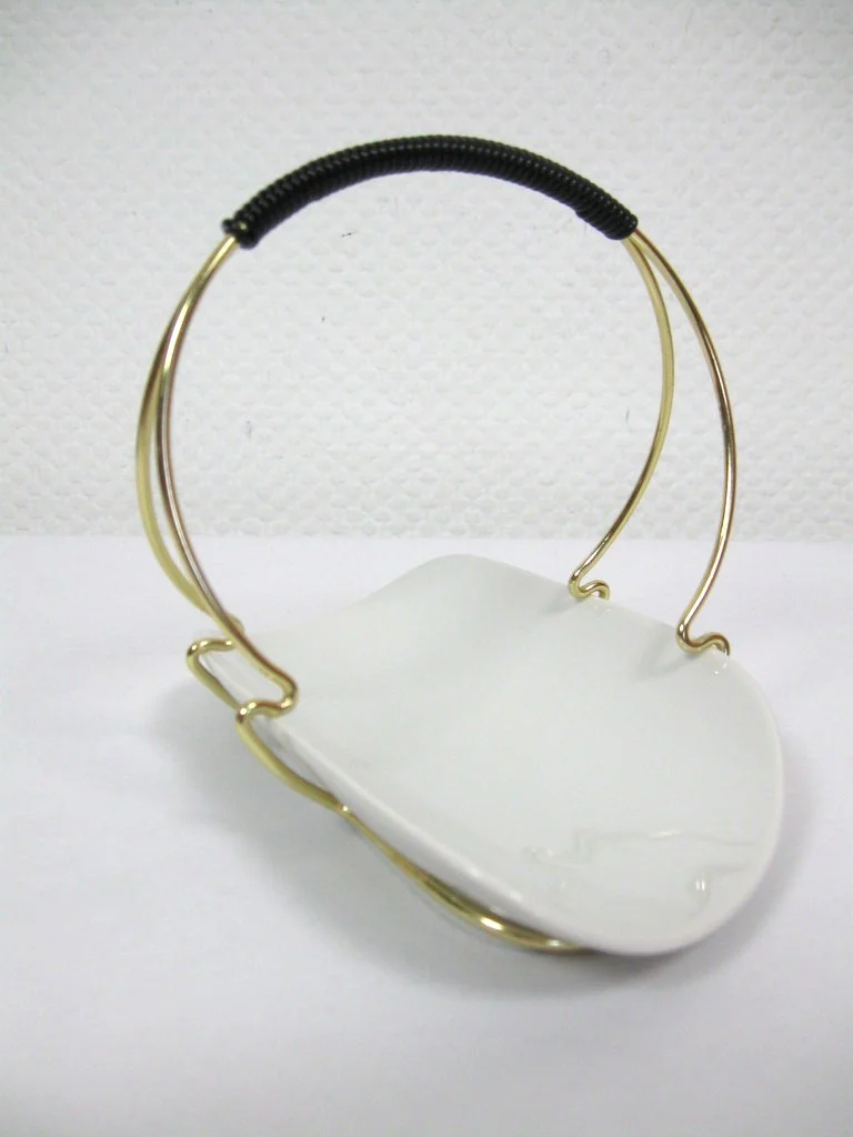 The bowl is made of porcelain and has a brass handle with plastic coating.