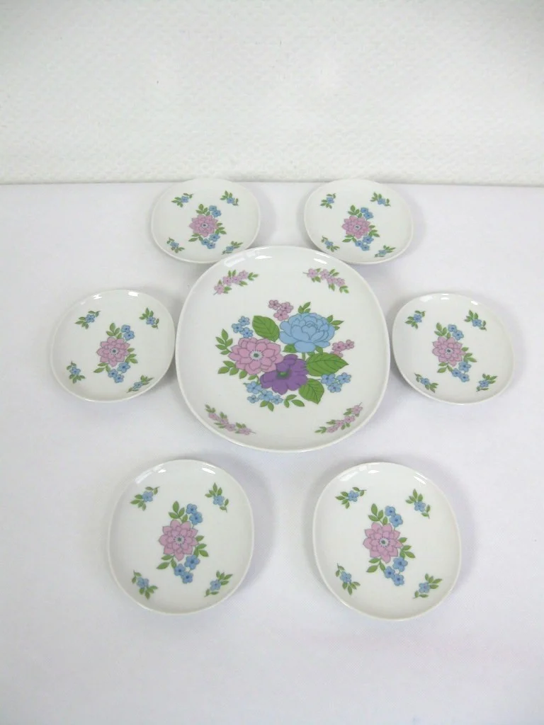The set consists of one large and six small bowls. All bowls are made of porcelain and come from the house of Heinrich.