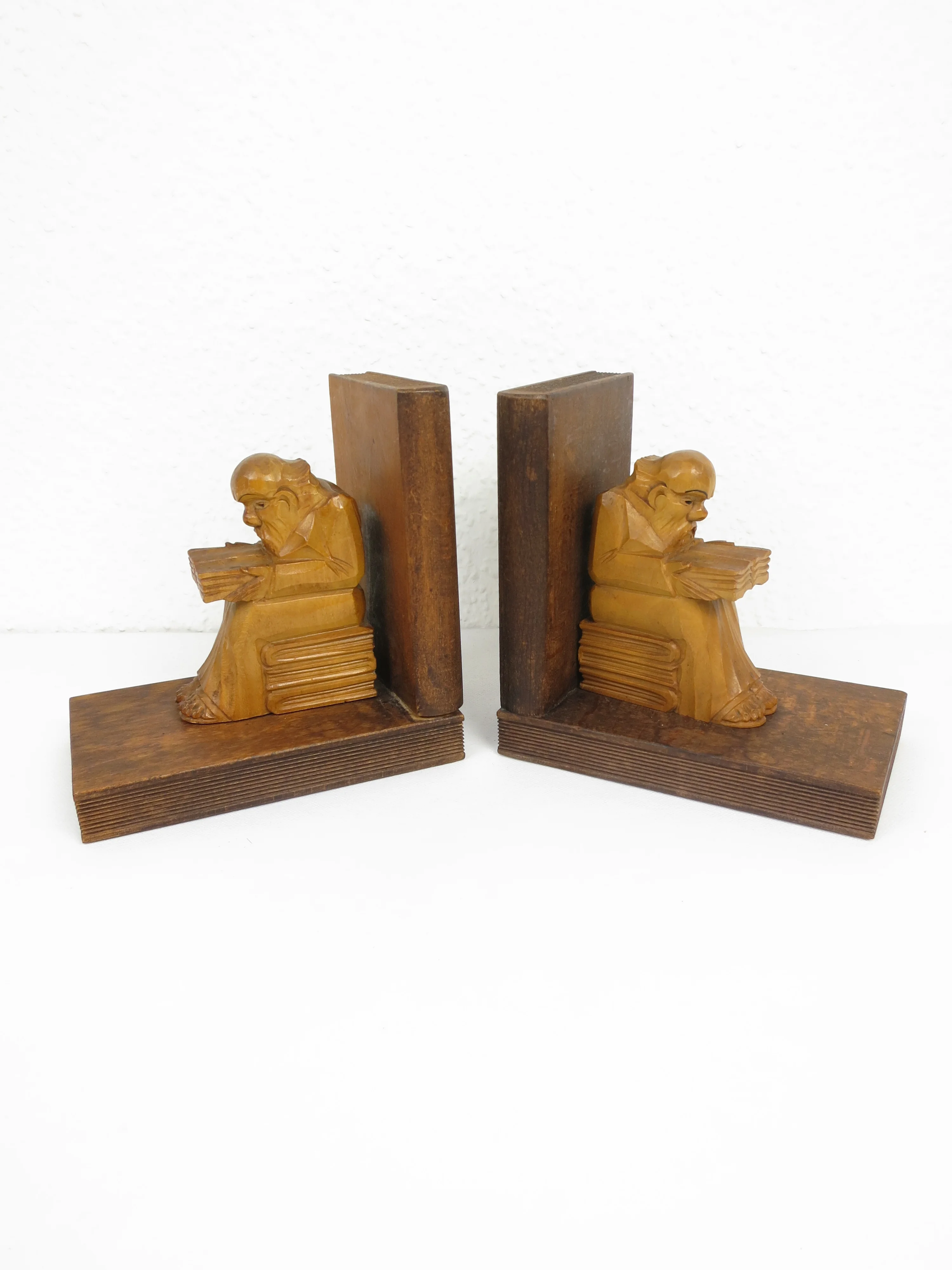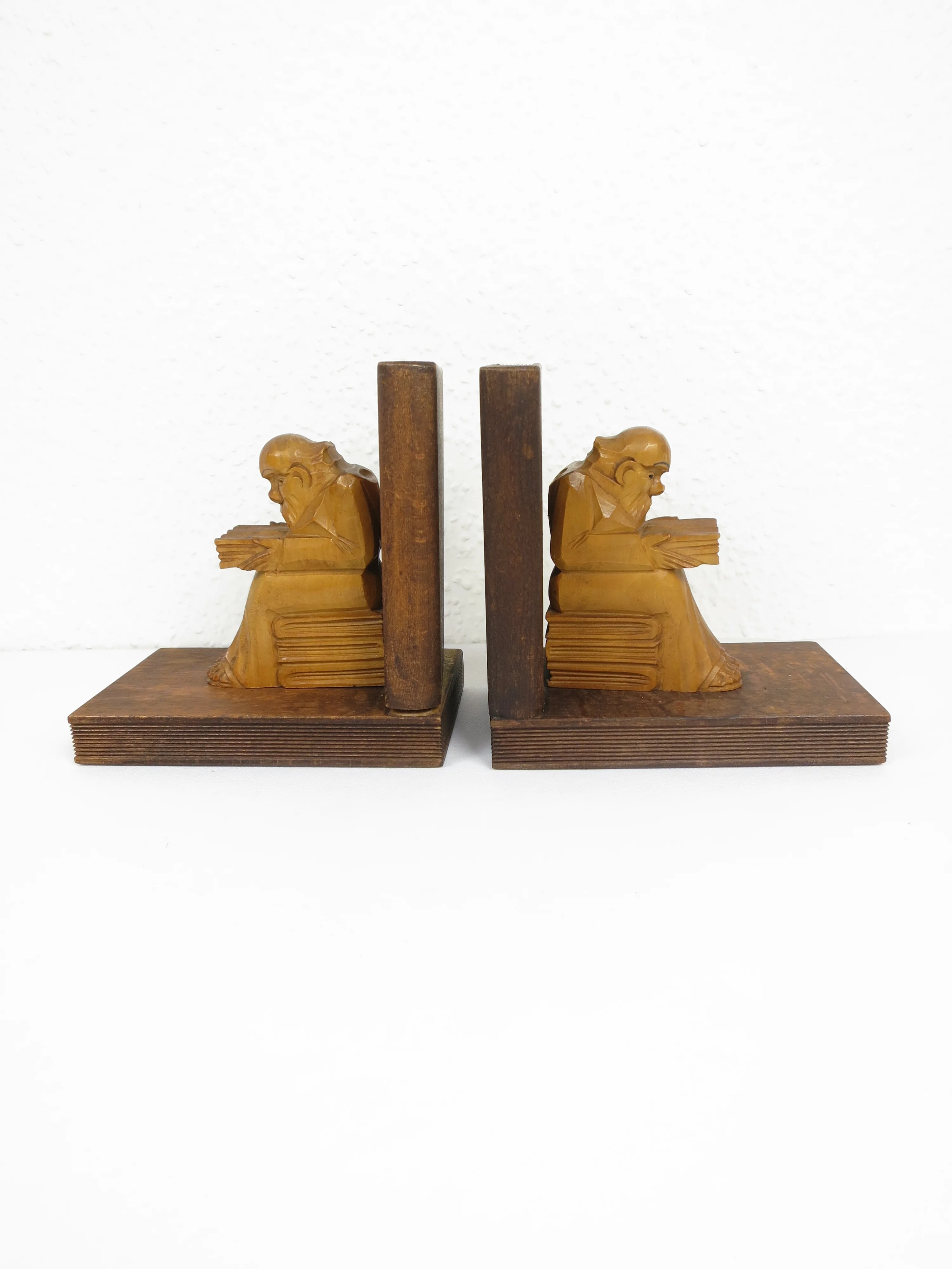 The bookends with reading monks are hand carved from real wood.
