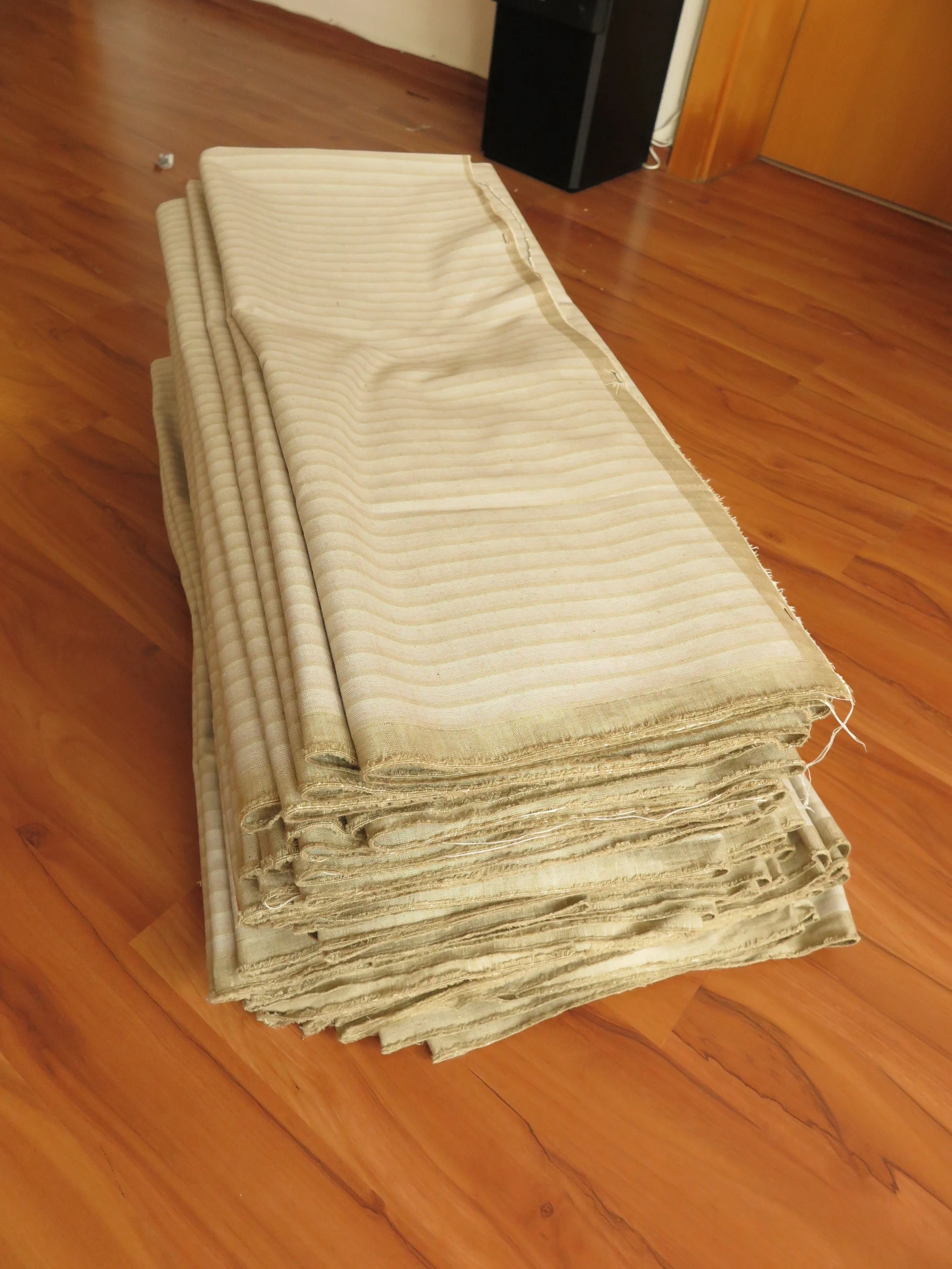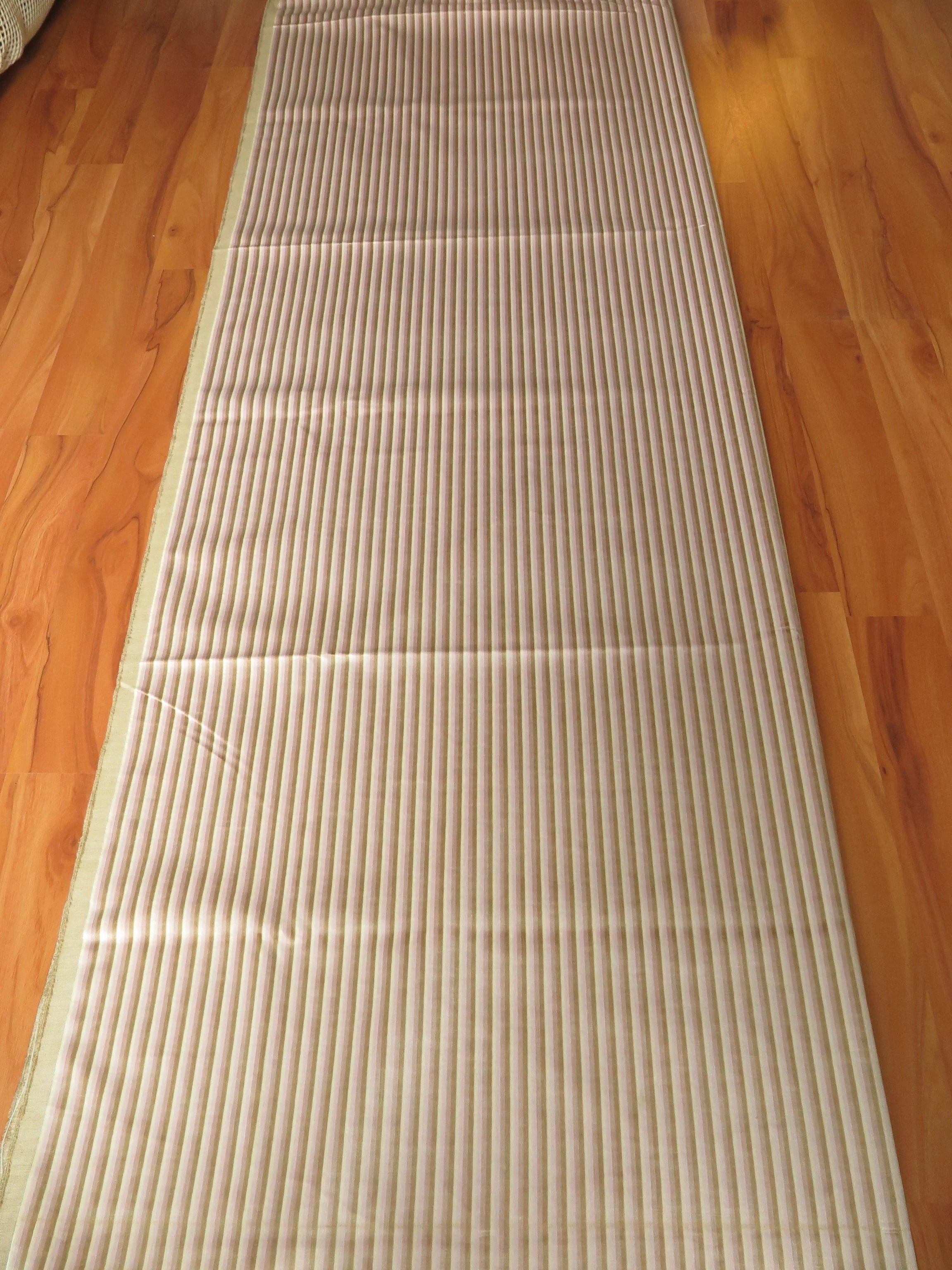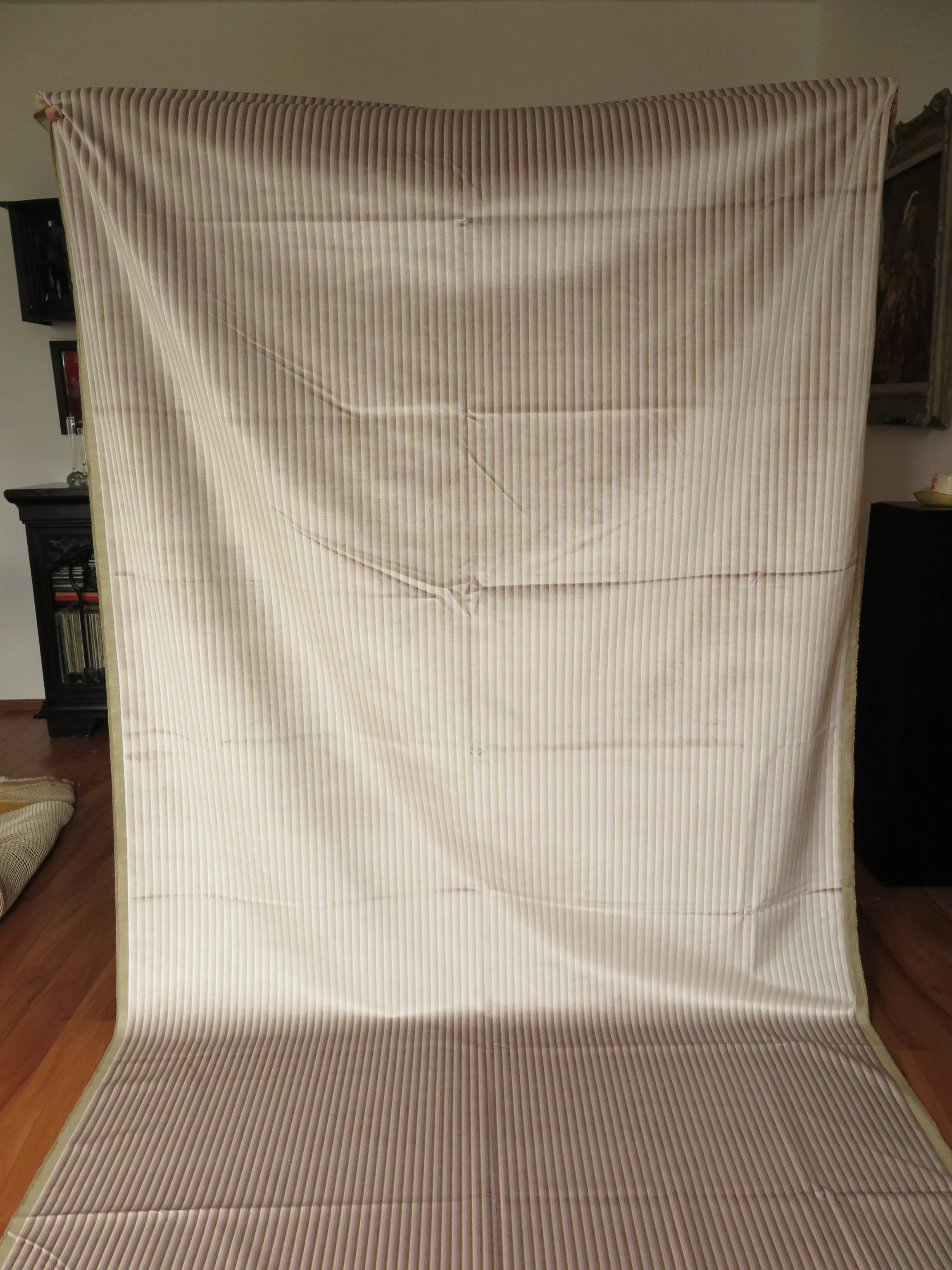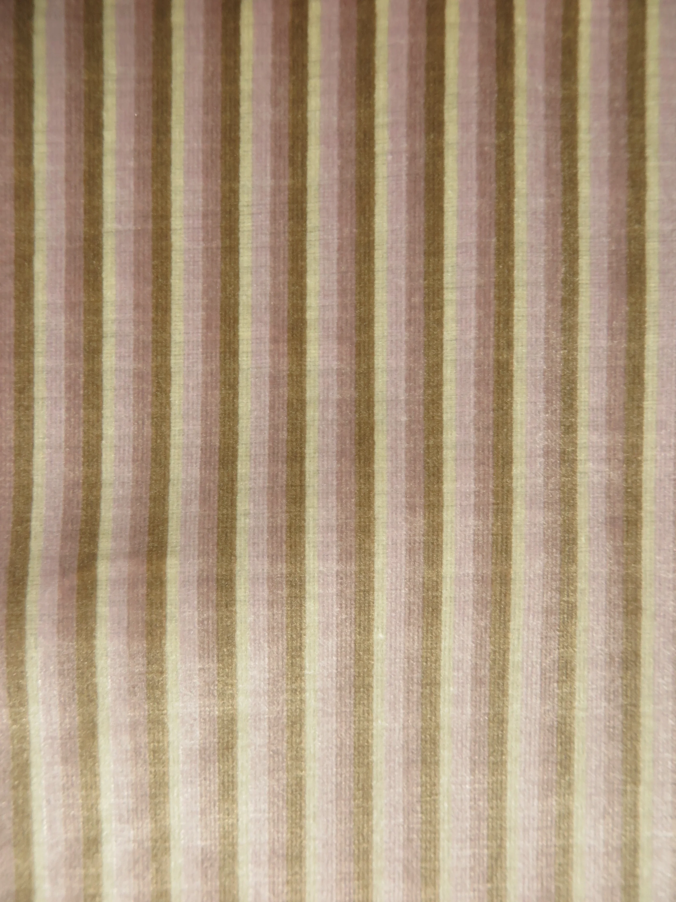 The upholstery velvet is thick, with a stable back and therefore ideal for covering furniture. Its delicate stripe design in light violet, light beige and fine brown is reminiscent of upholstery fabrics from the Biedermeier era.