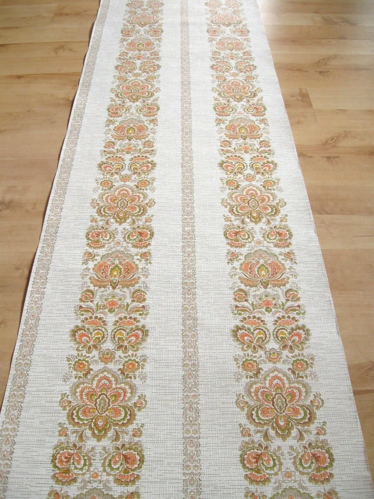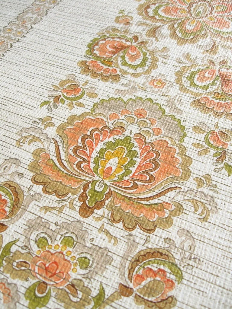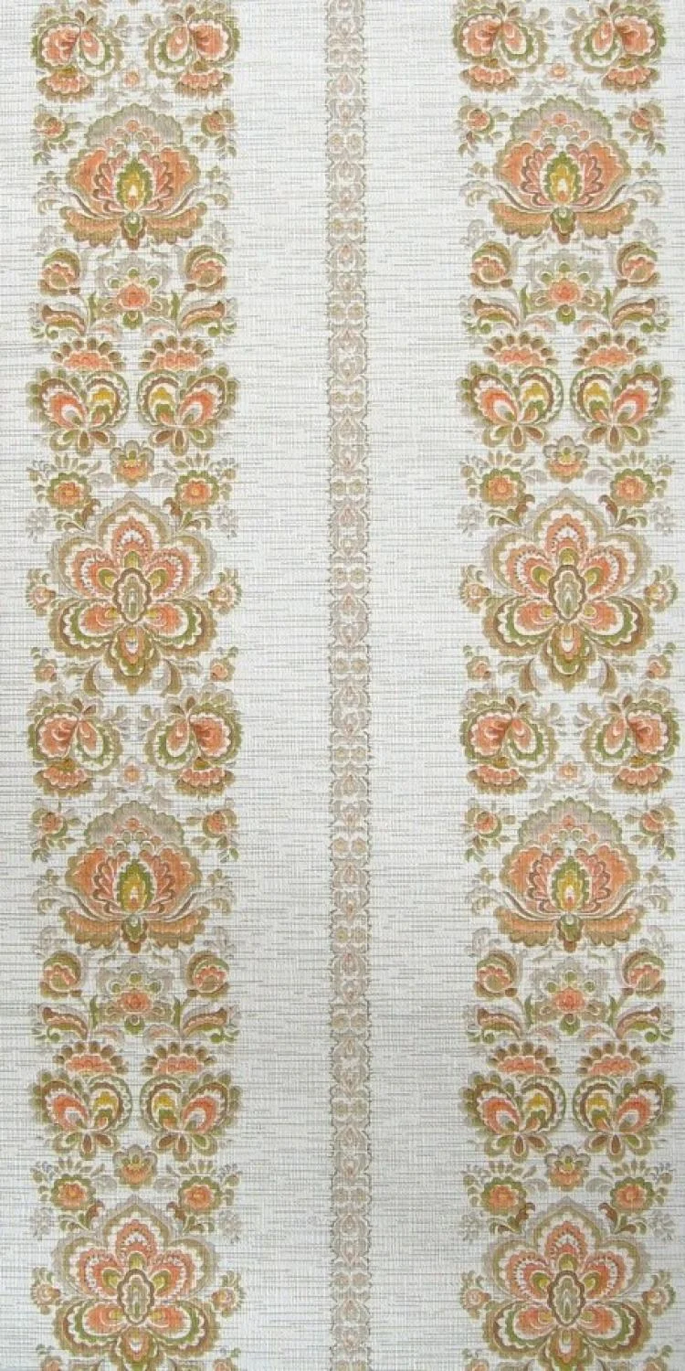 A pretty ornamentation, strong colors and a slight gloss characterize this wallpaper.