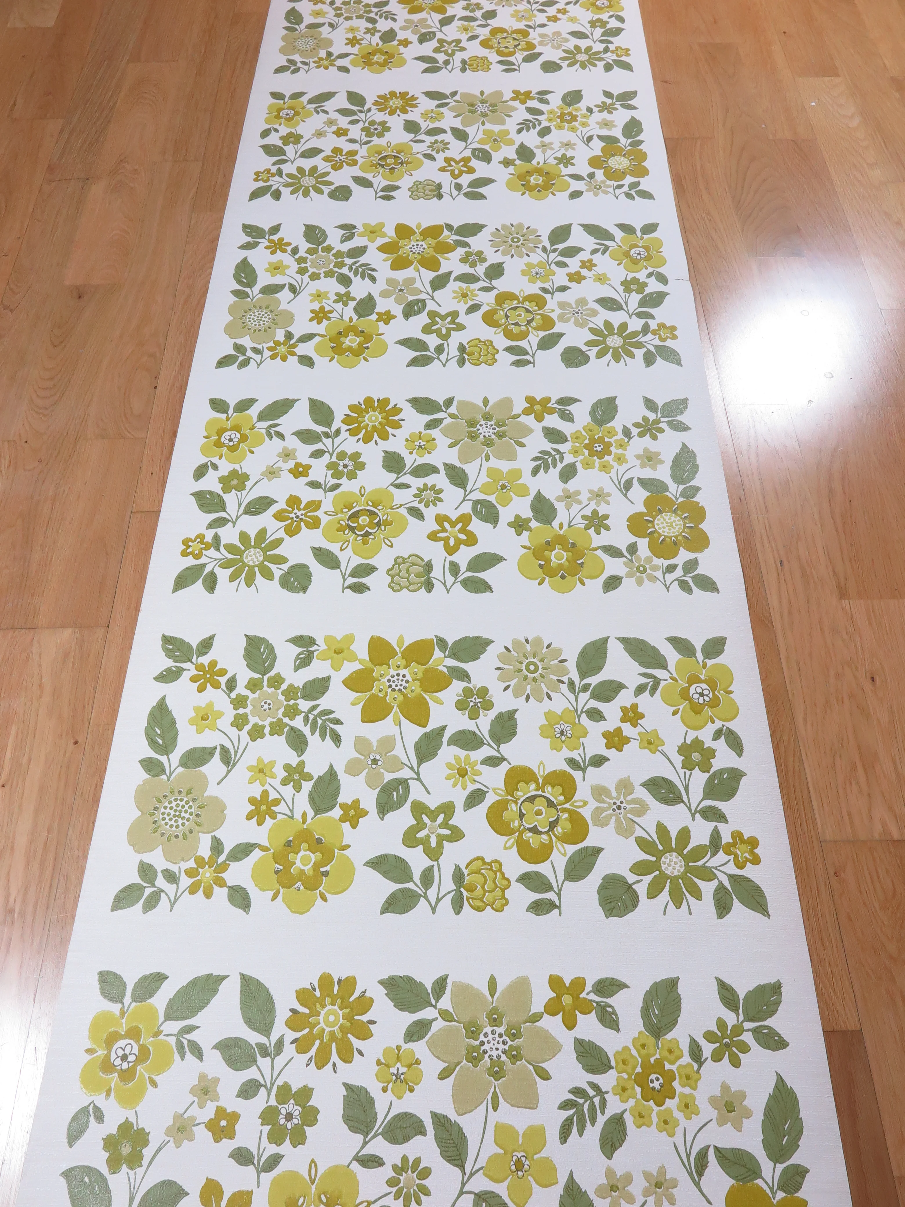 The genuine vintage paper wallpaper is slightly glossy, smooth and of good quality.