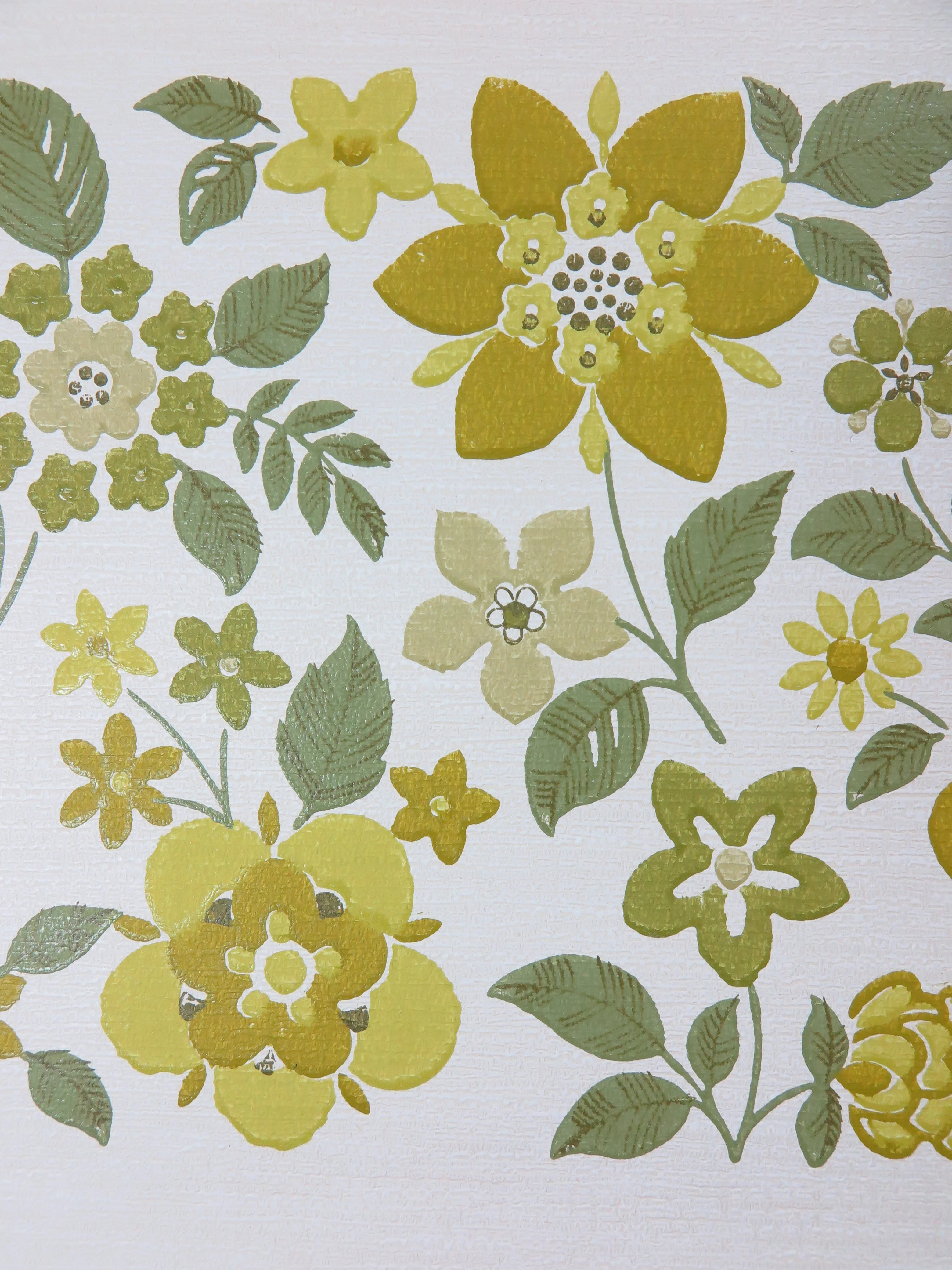 Original 70s retro wallpaper yellow, beige, green and ochre