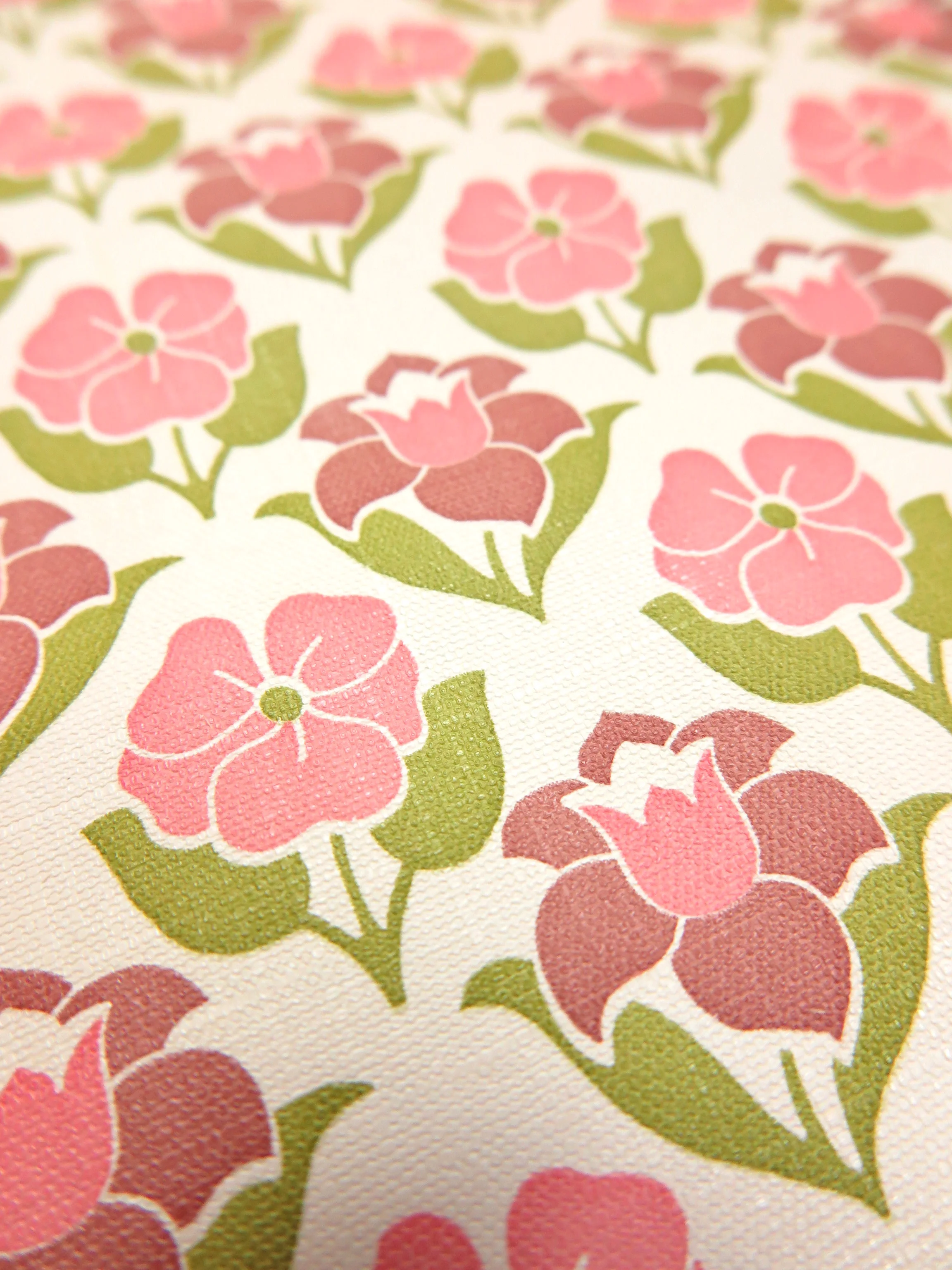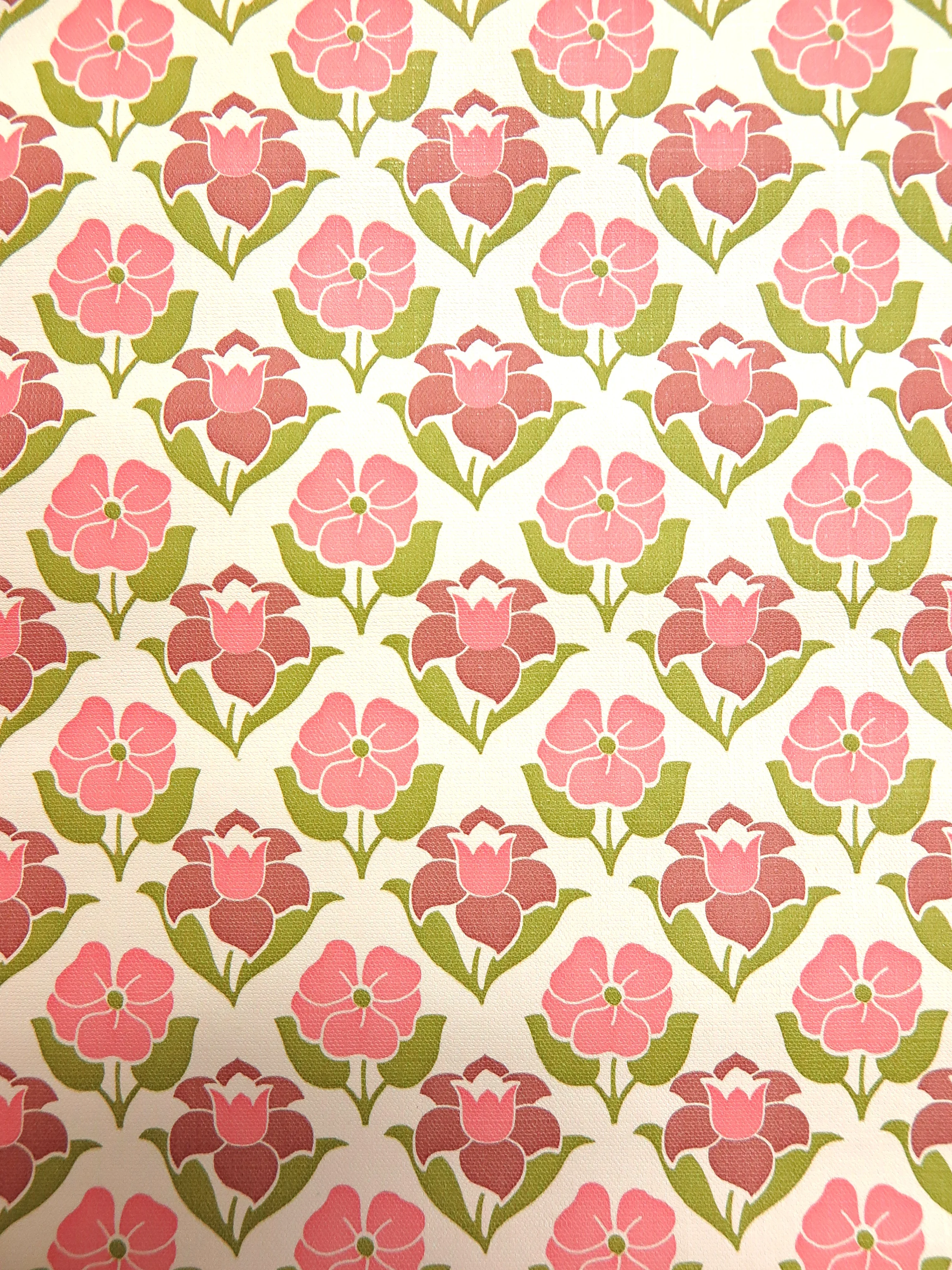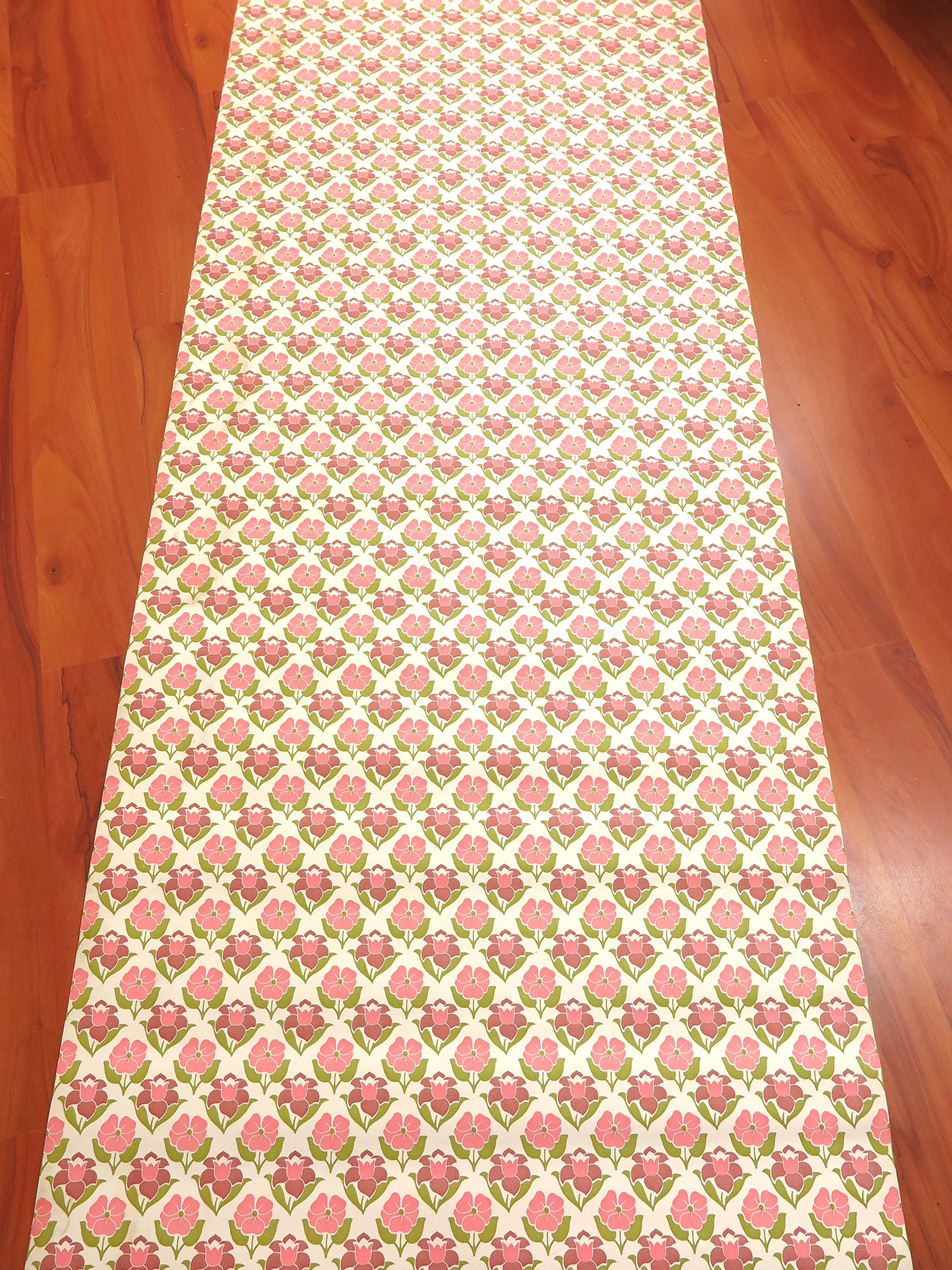 Beautiful original vintage wallpaper from the 70s in pink, green and white