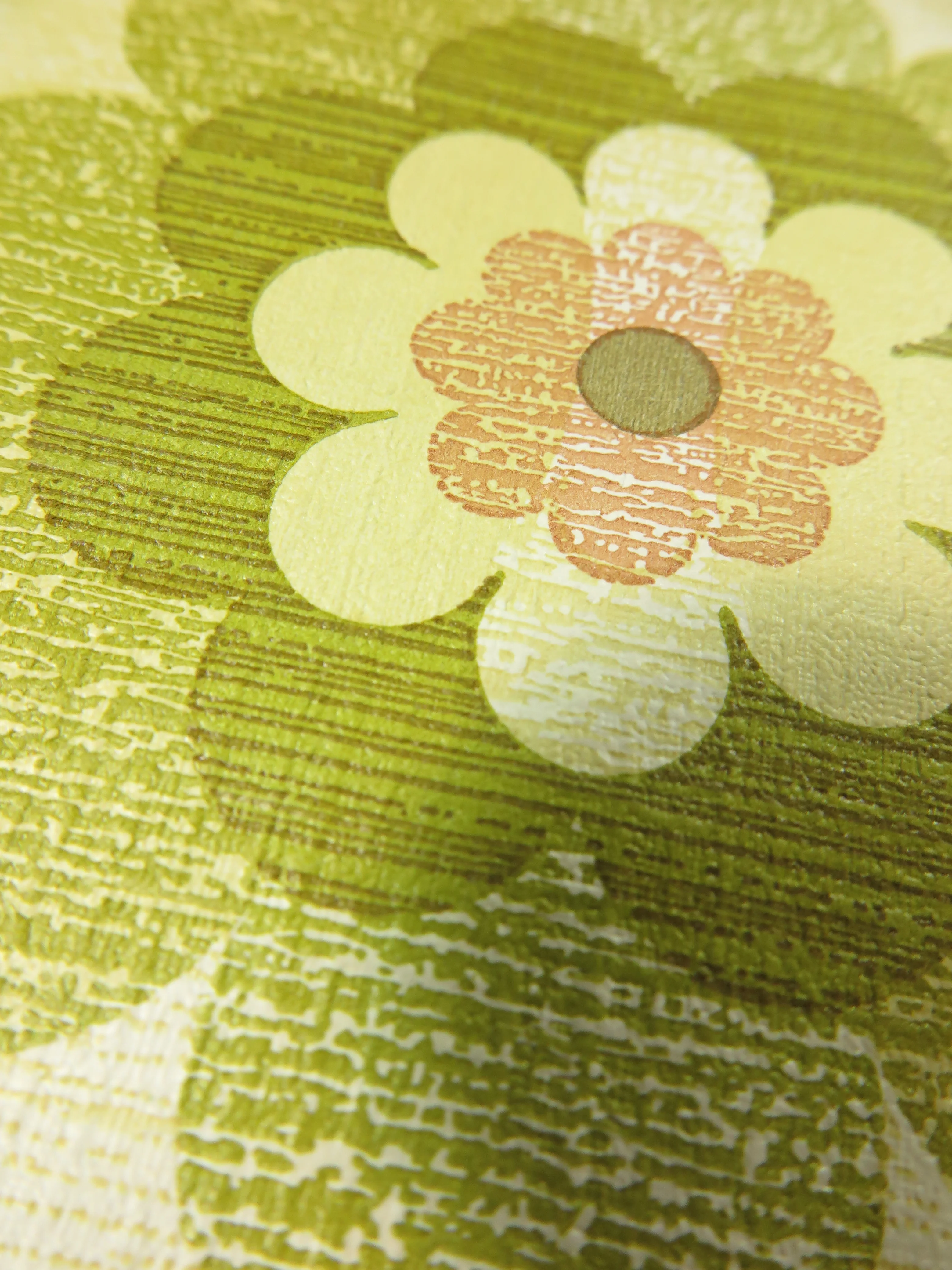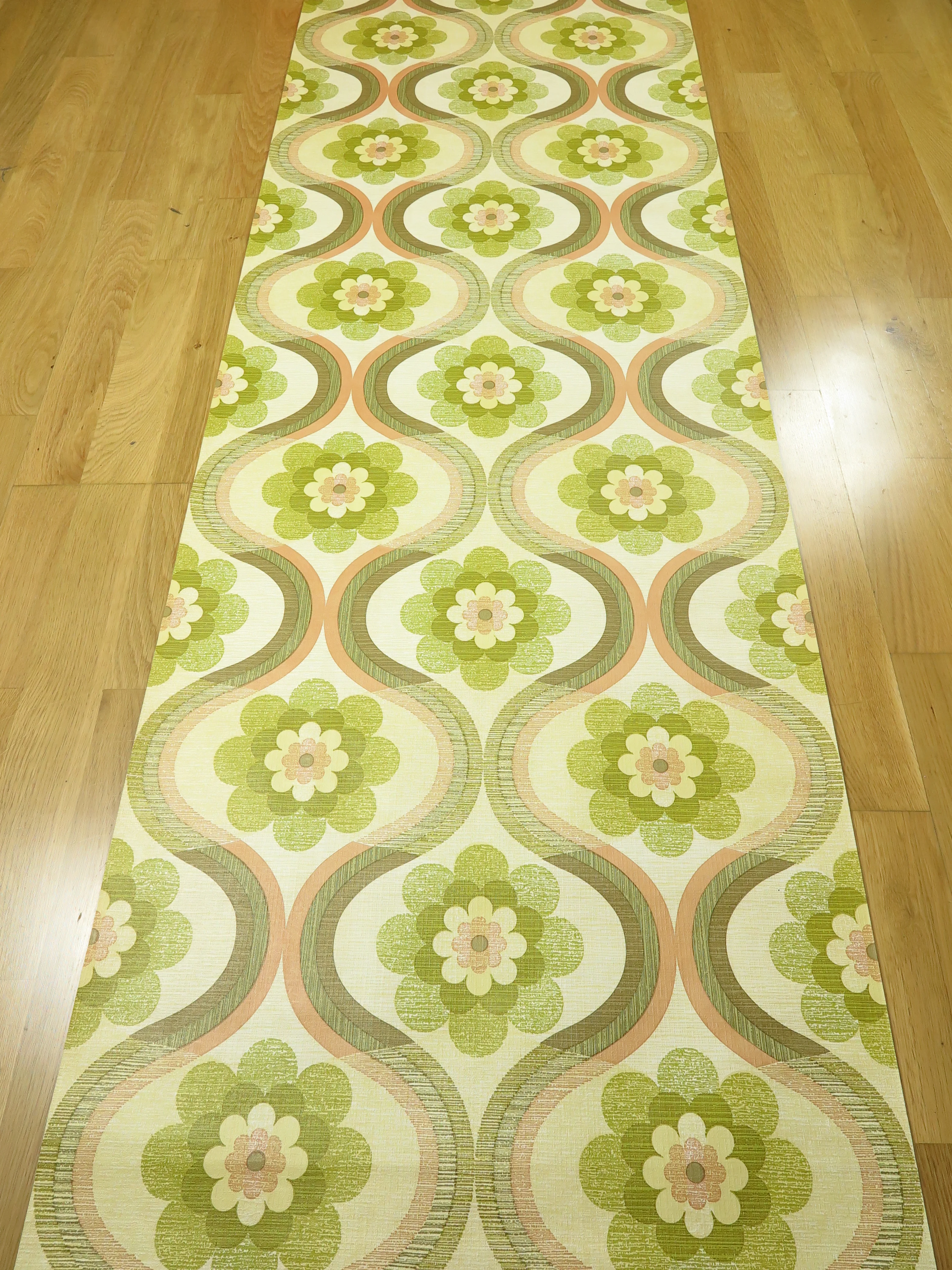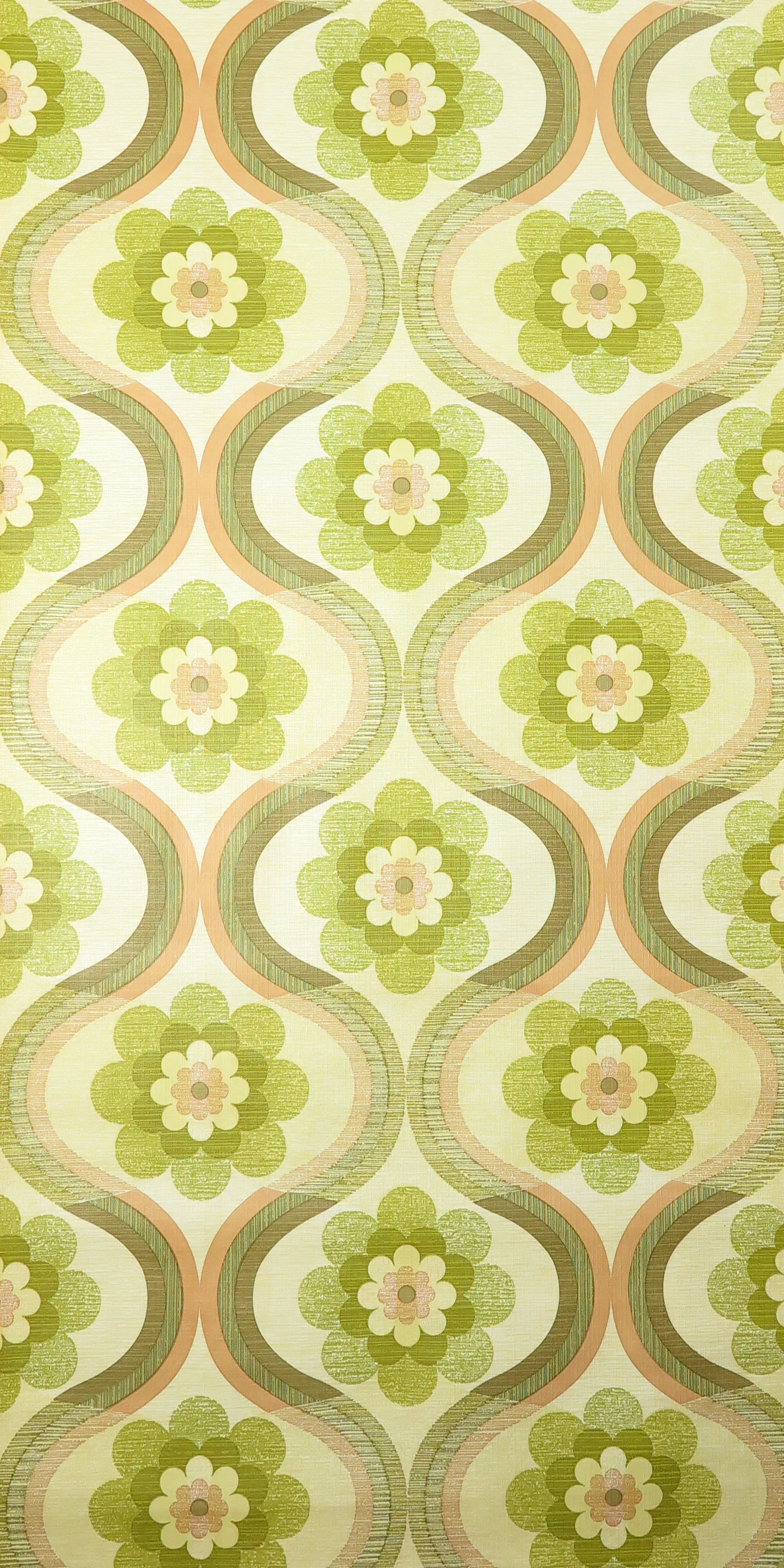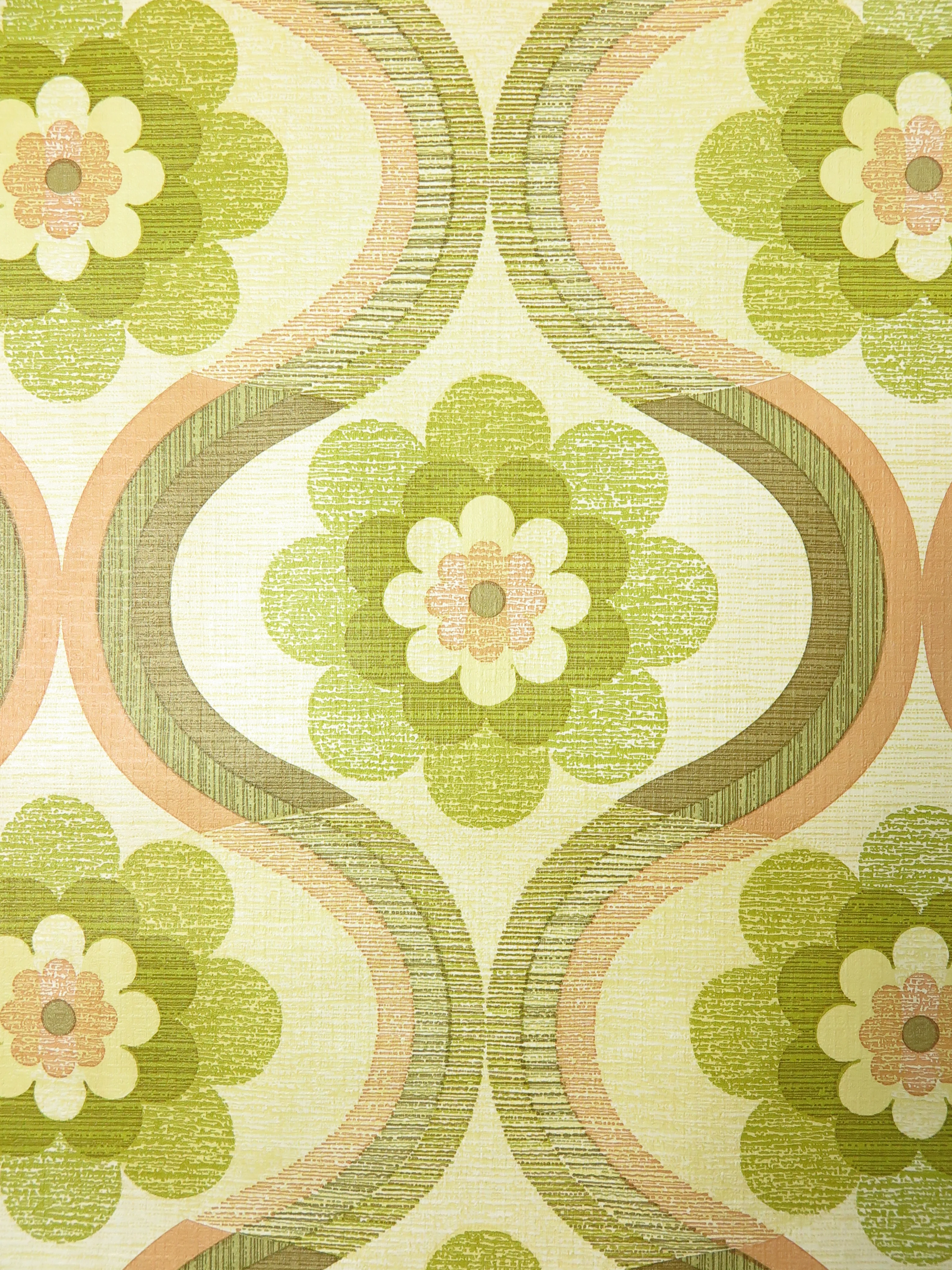 Very beautiful original 70s vintage wallpaper in olive and old rose variations