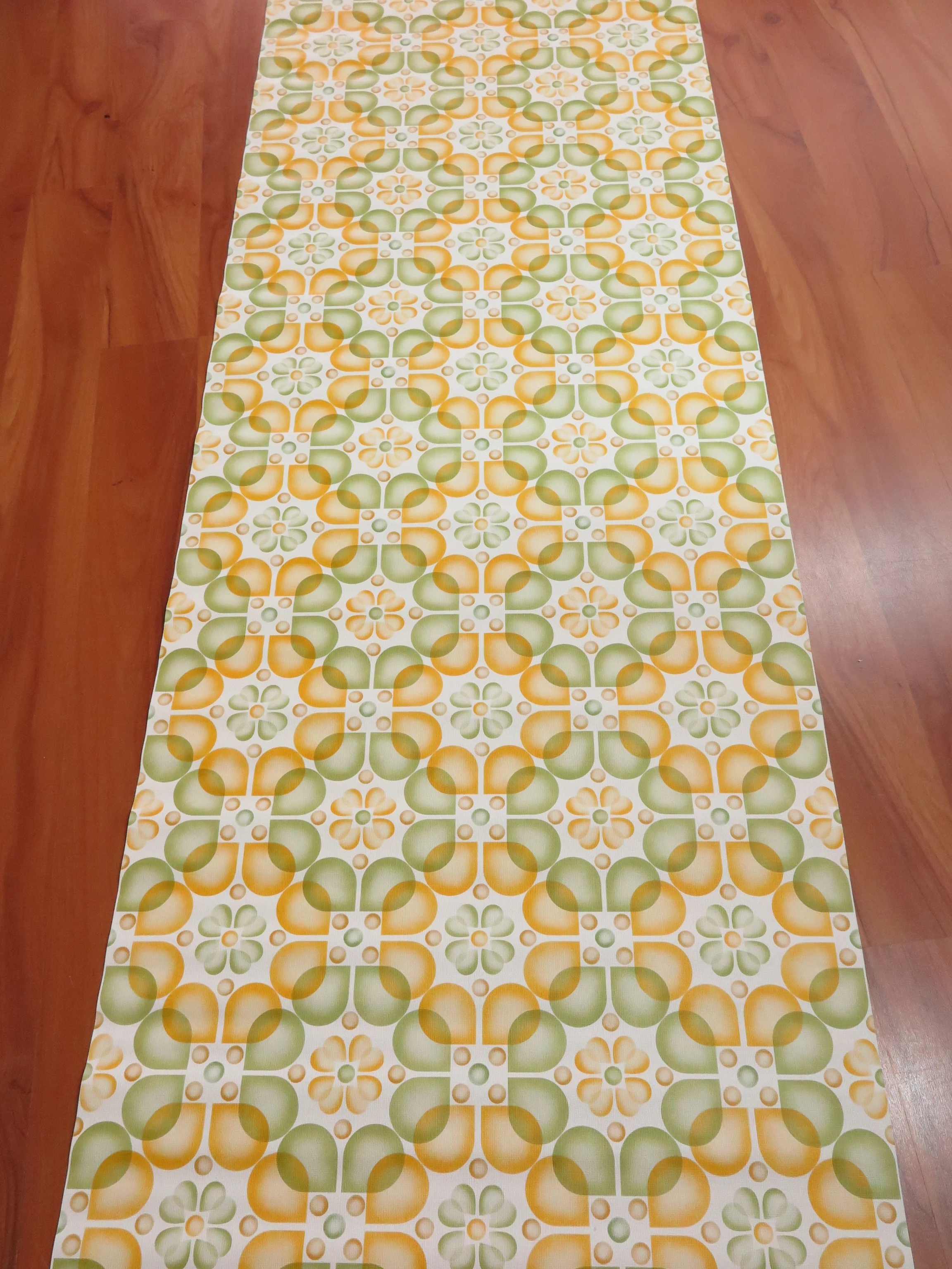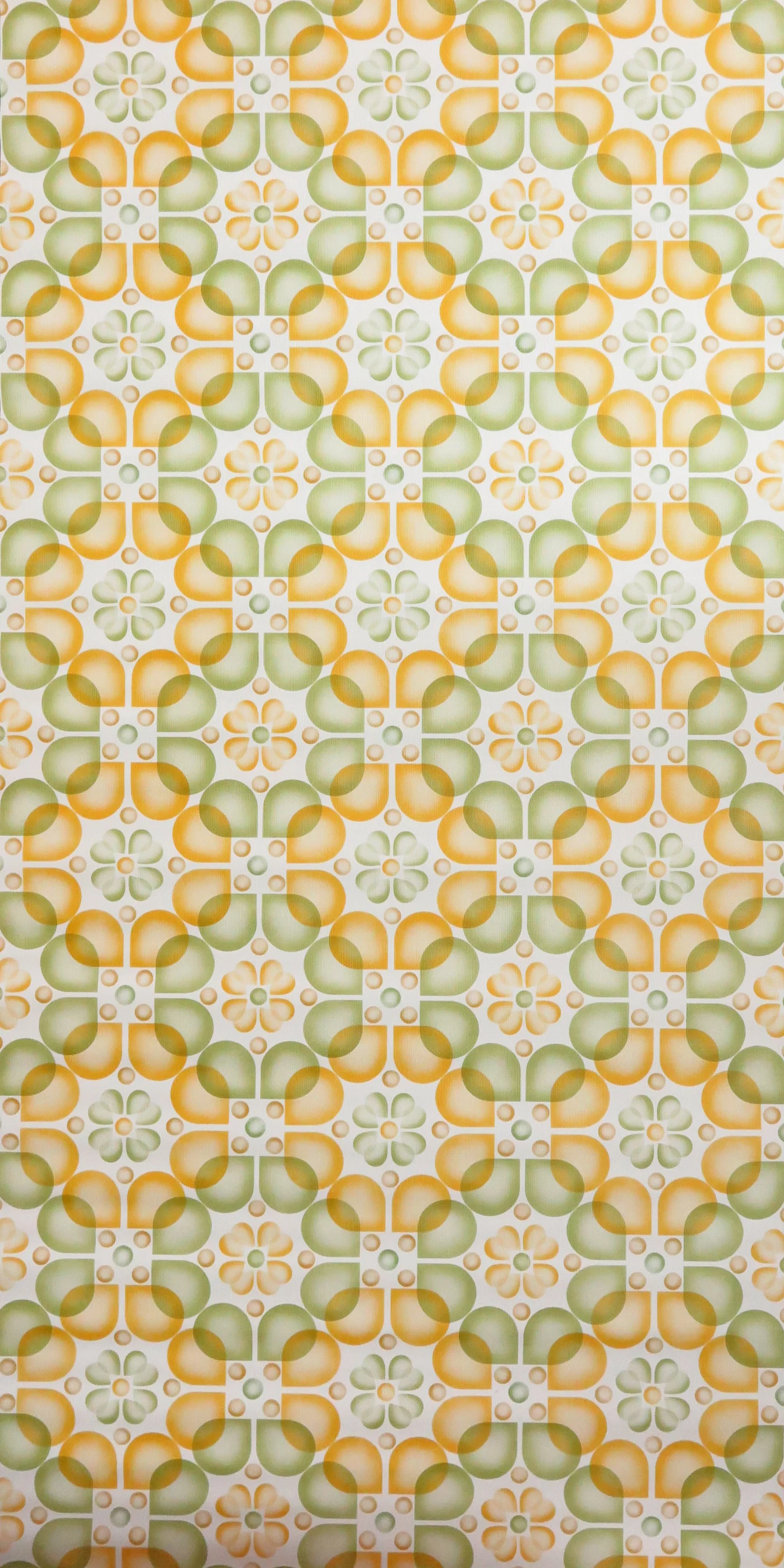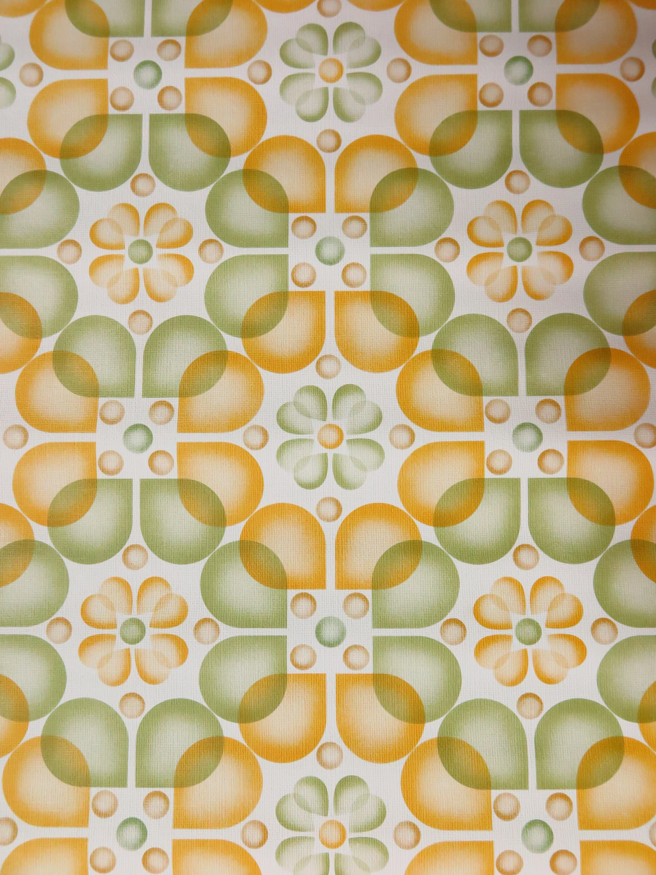 Fancy original 70s wallpaper with stylized ochre and green blossoms
