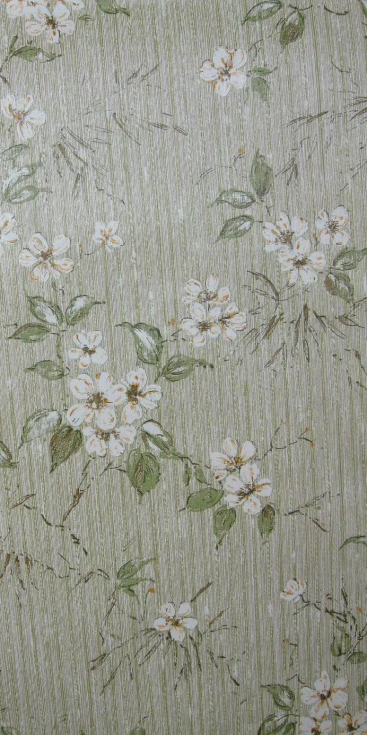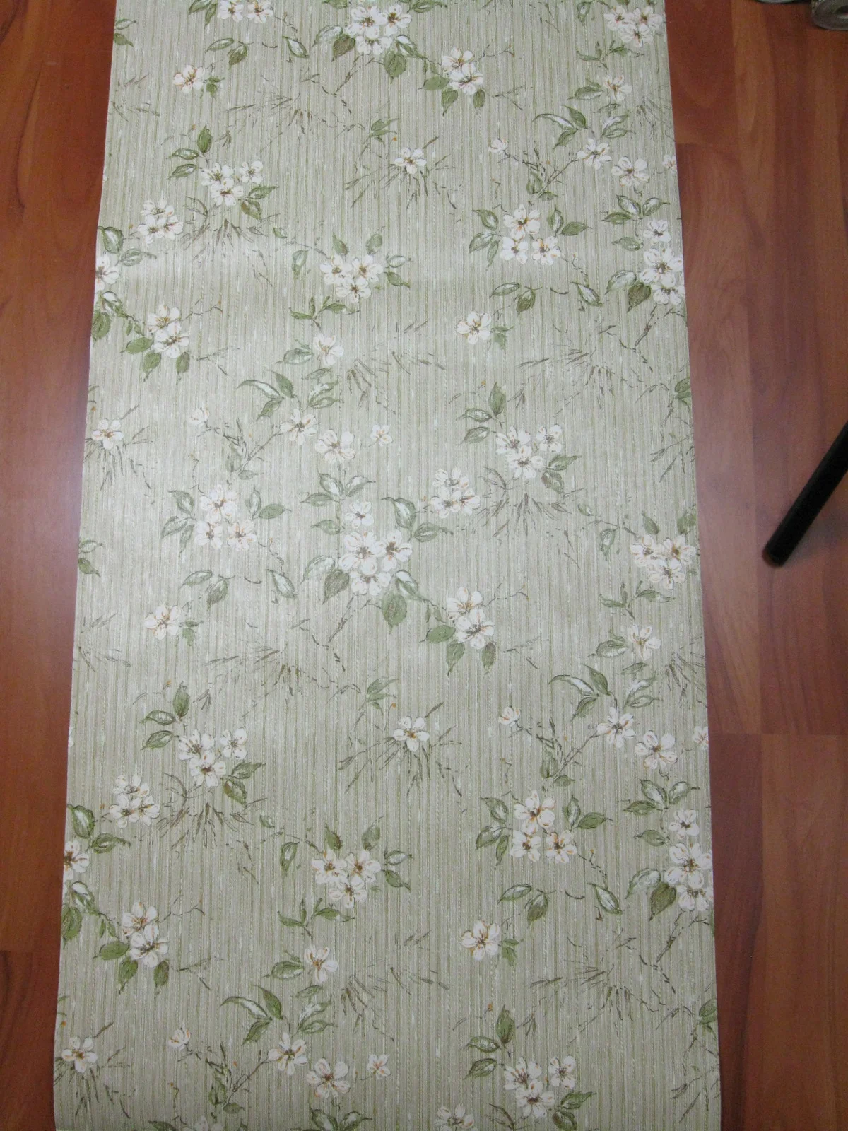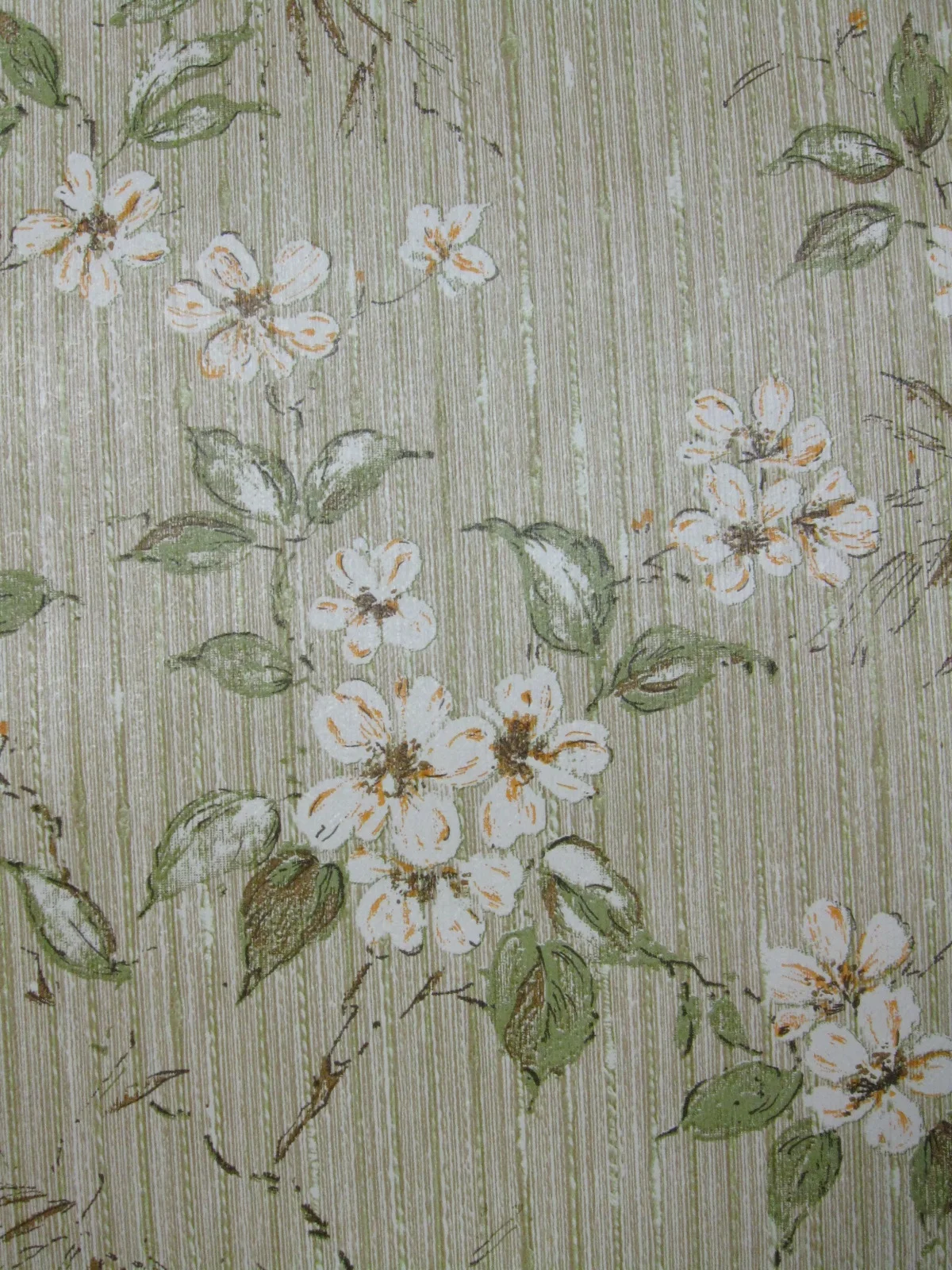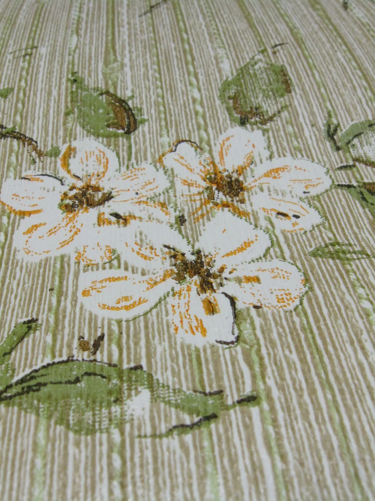 Pretty original 70's wallpaper with cherry branches on printed linen background