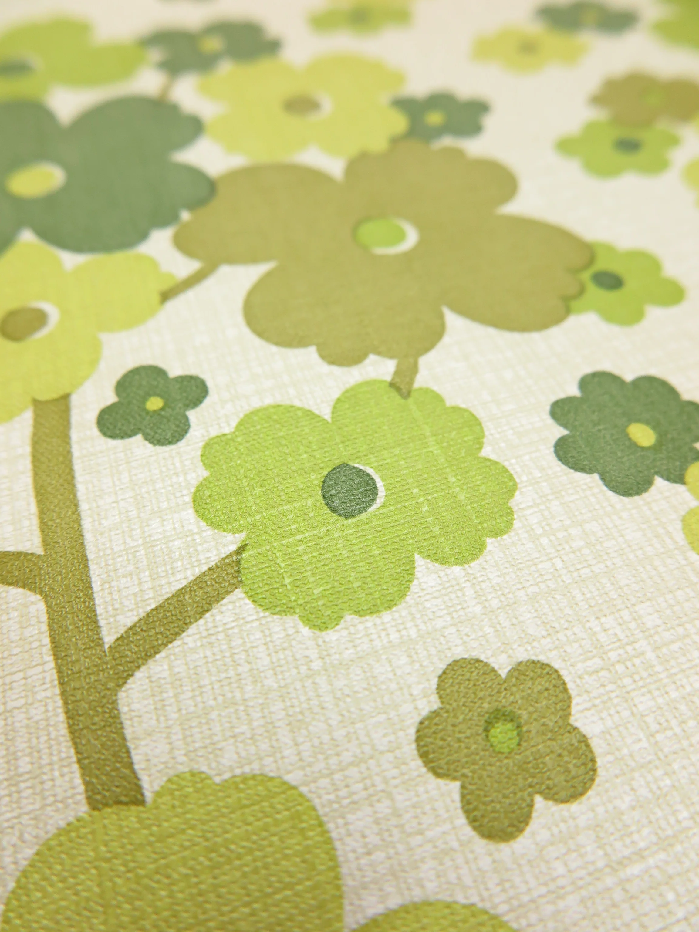 This beautiful flower wallpaper in fresh green tones is 100% lightfast and washable.