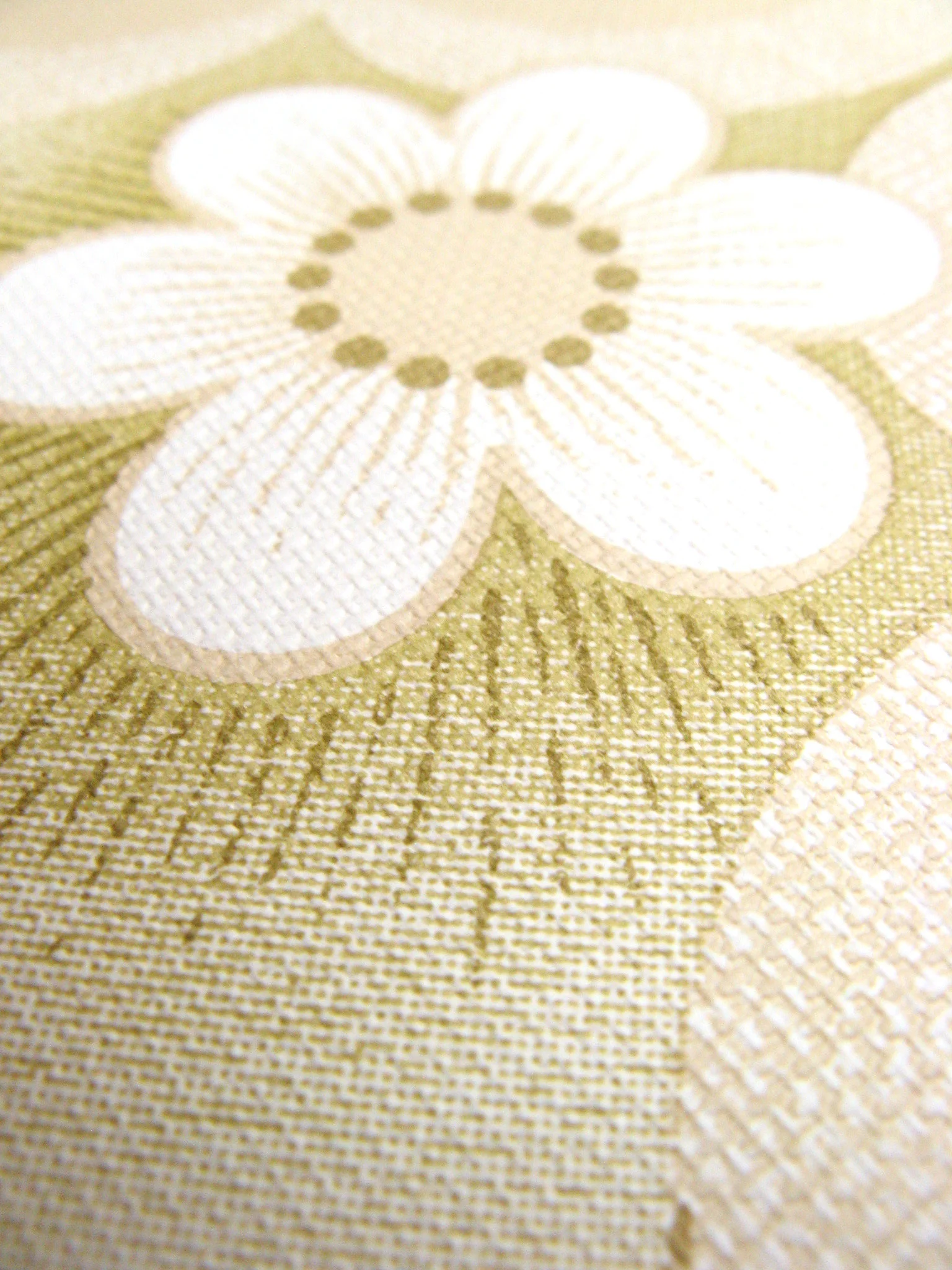 This wallpaper in graded olive shades offers a pleasant background. The flowers spread a positive atmosphere.