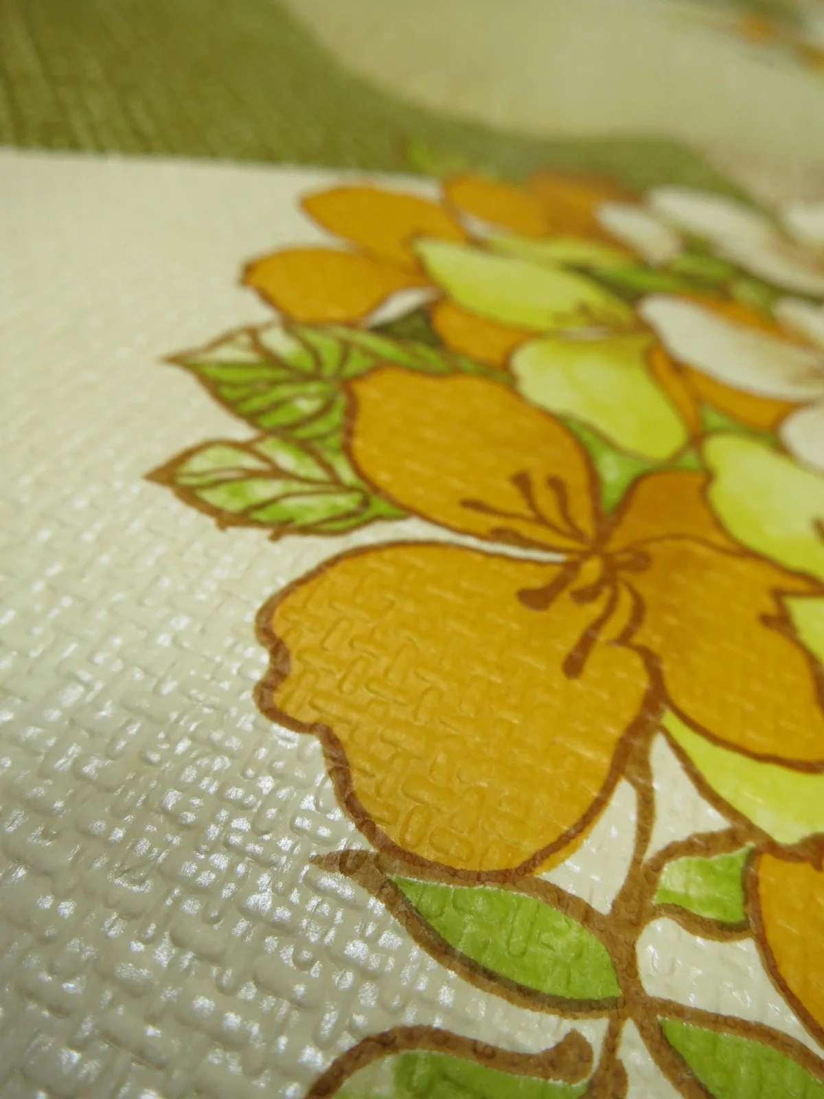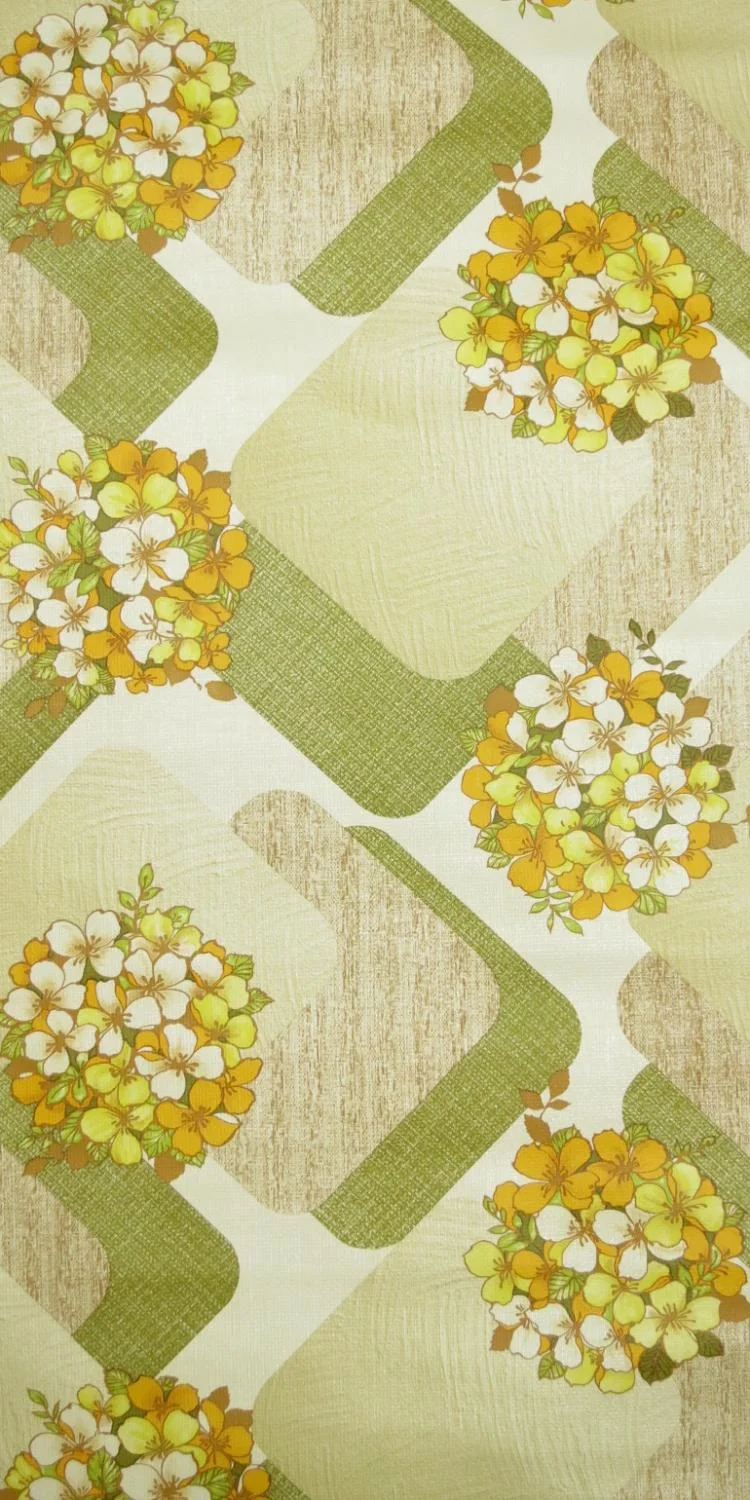 Fancy original 70's wallpaper in green, orange, brown and white