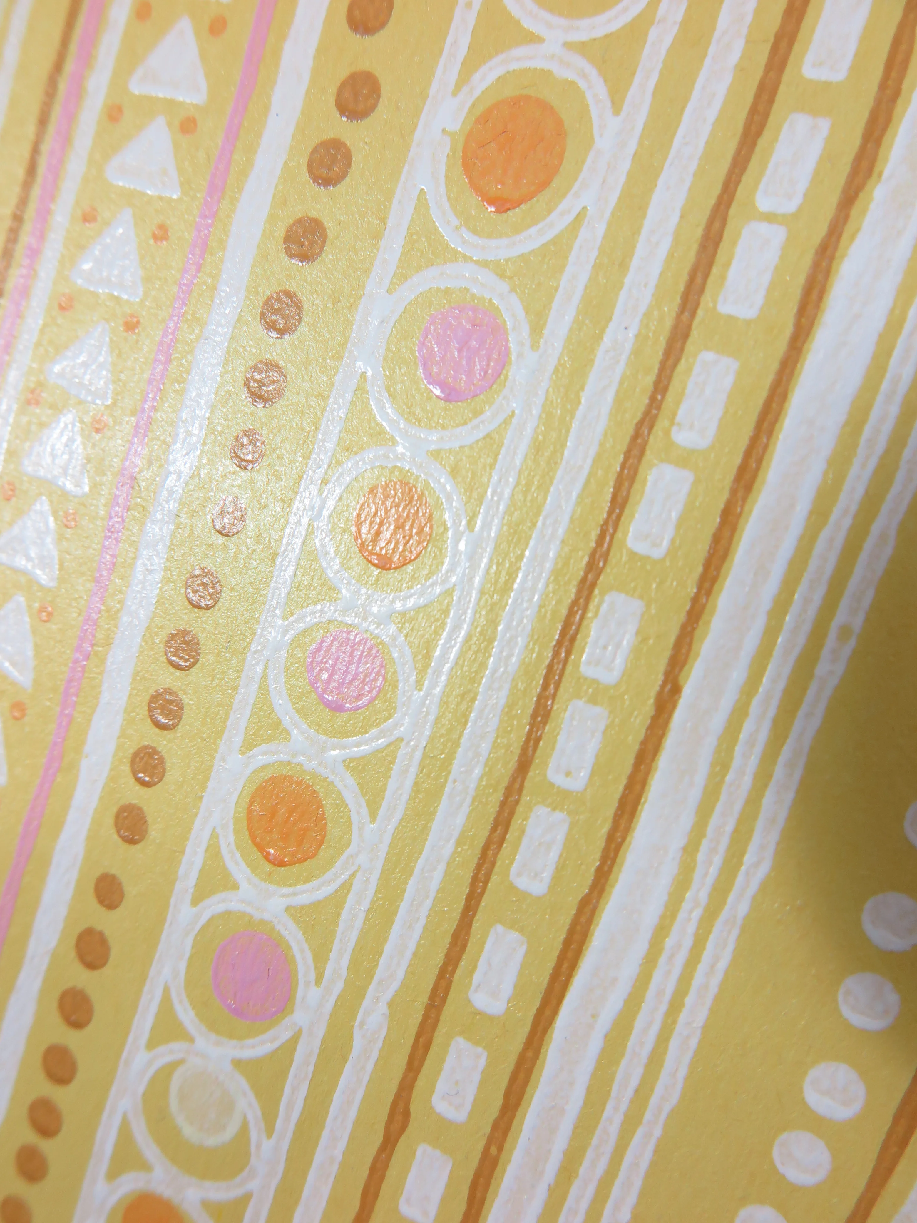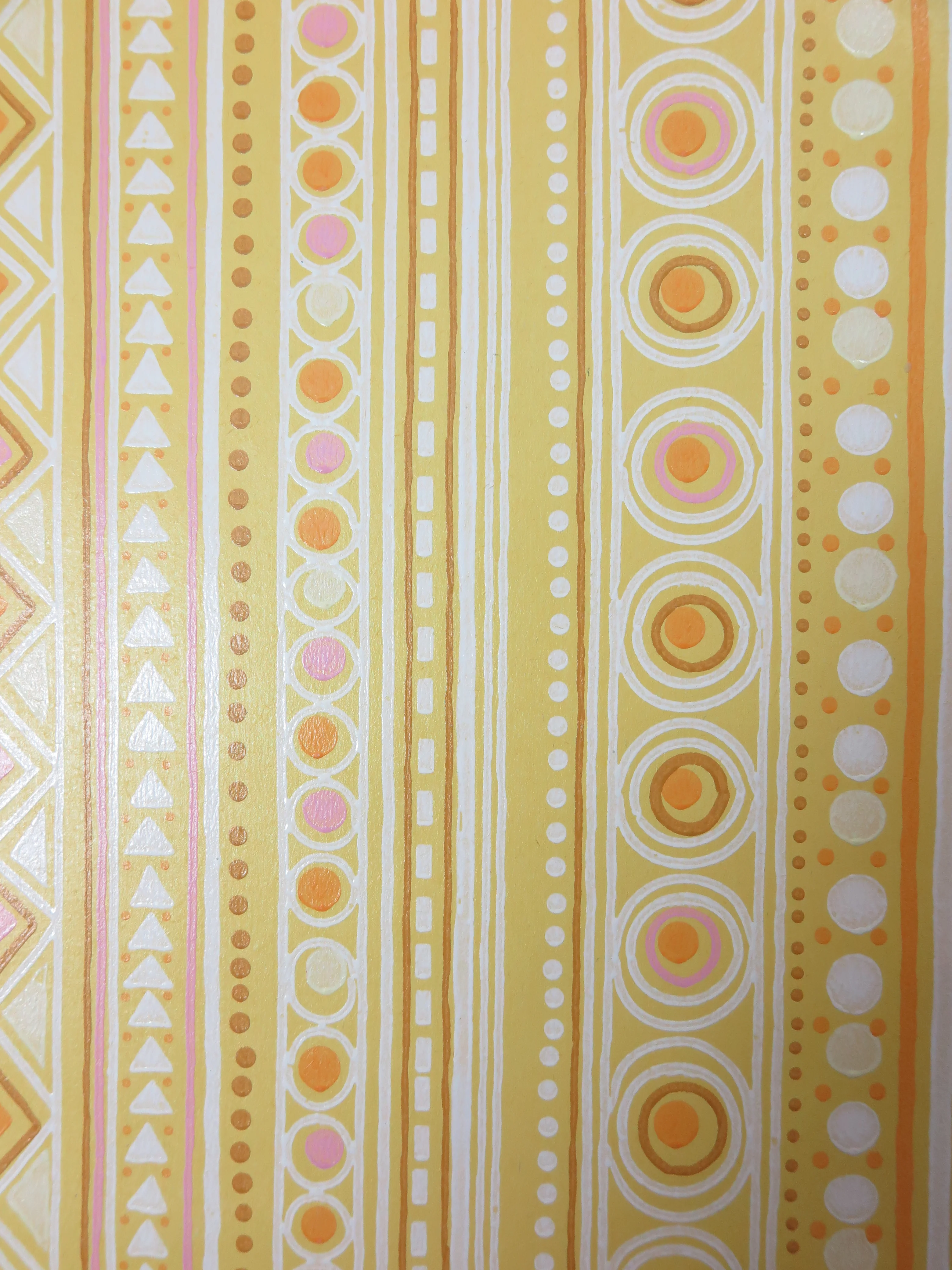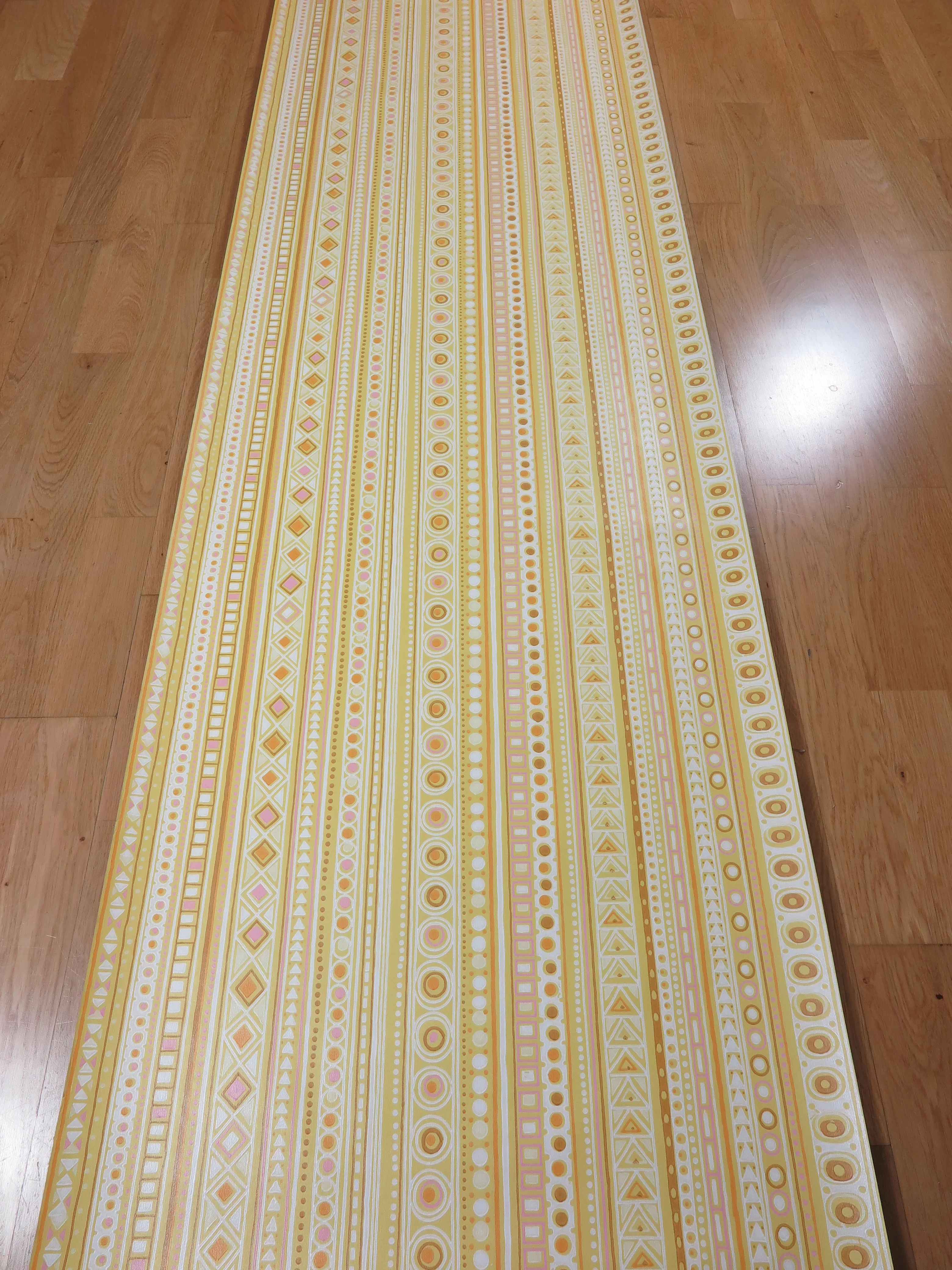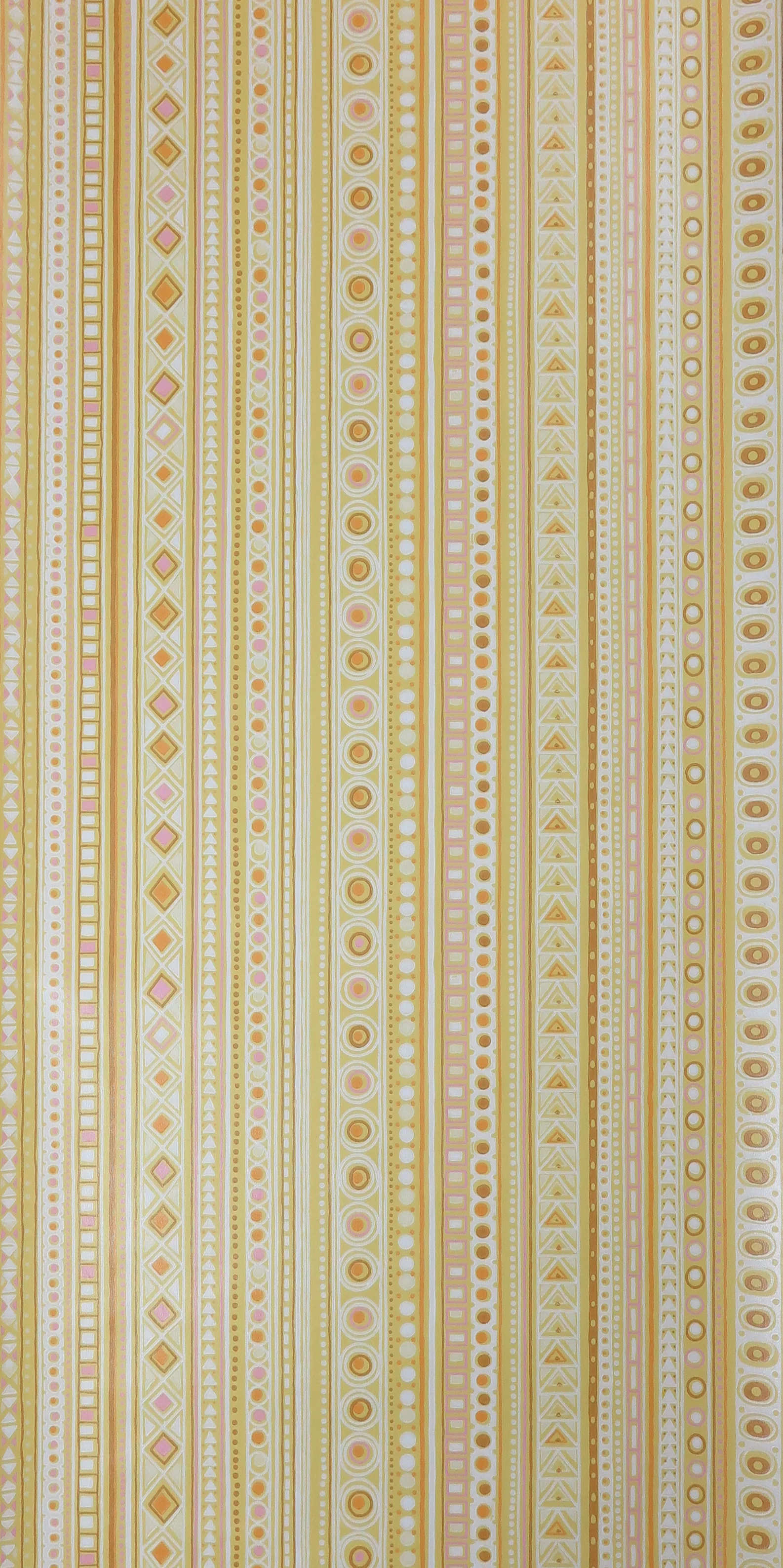 Original 70s vintage wallpaper in yellow, ocher, red, lilac, brown and white