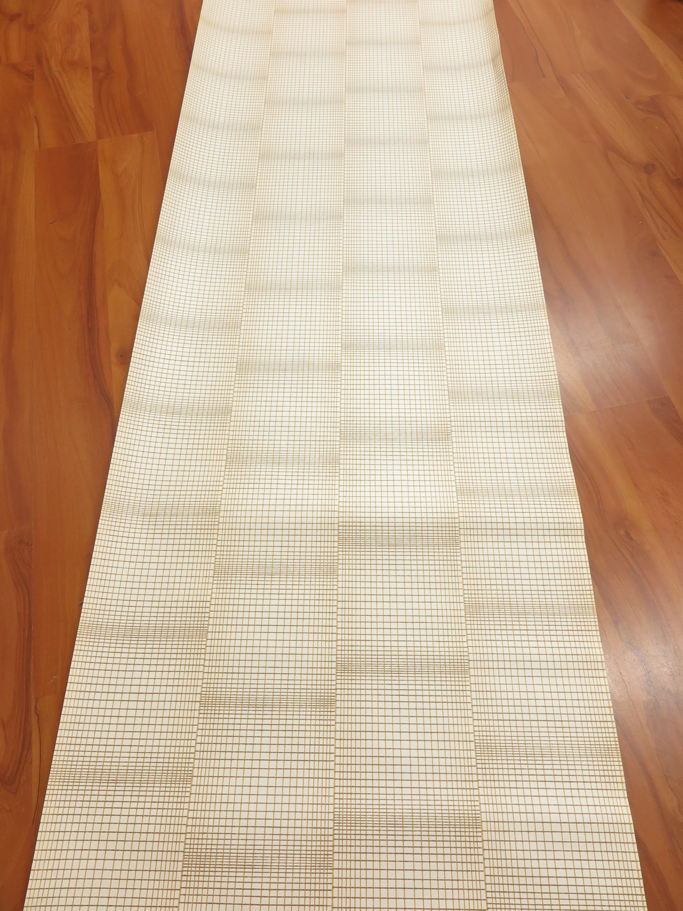 The real paper wallpaper is designed with a fine linear pattern in brown variations.