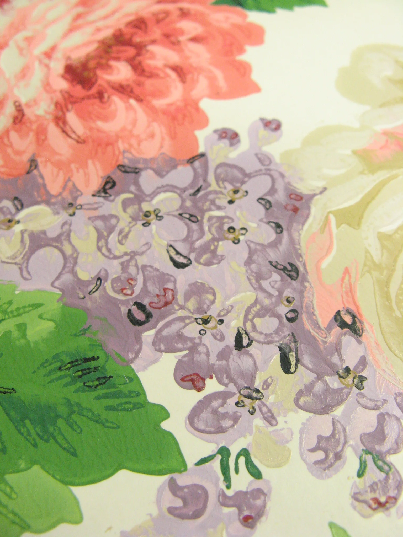 The generous floral arrangement in pastel shades on white effects artistic, impressionistic and exclusive.