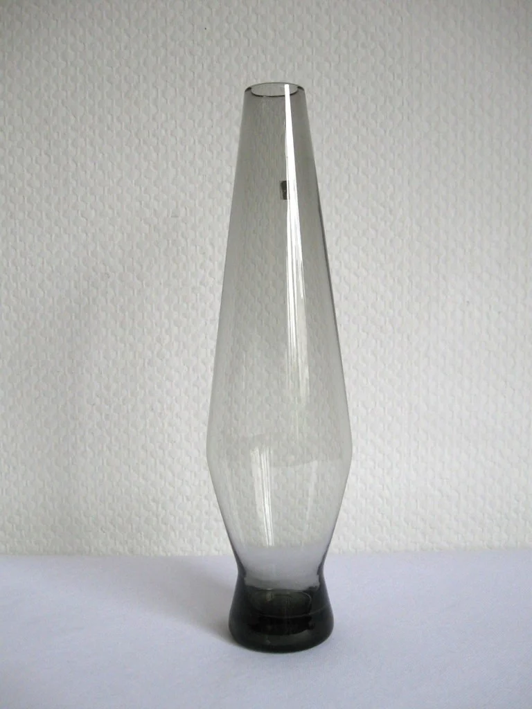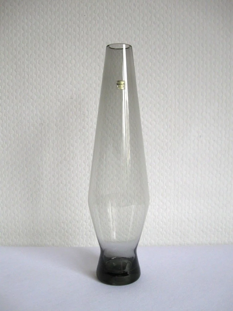 Very stylish flower vase from the 1960s made of discreet smoked glass