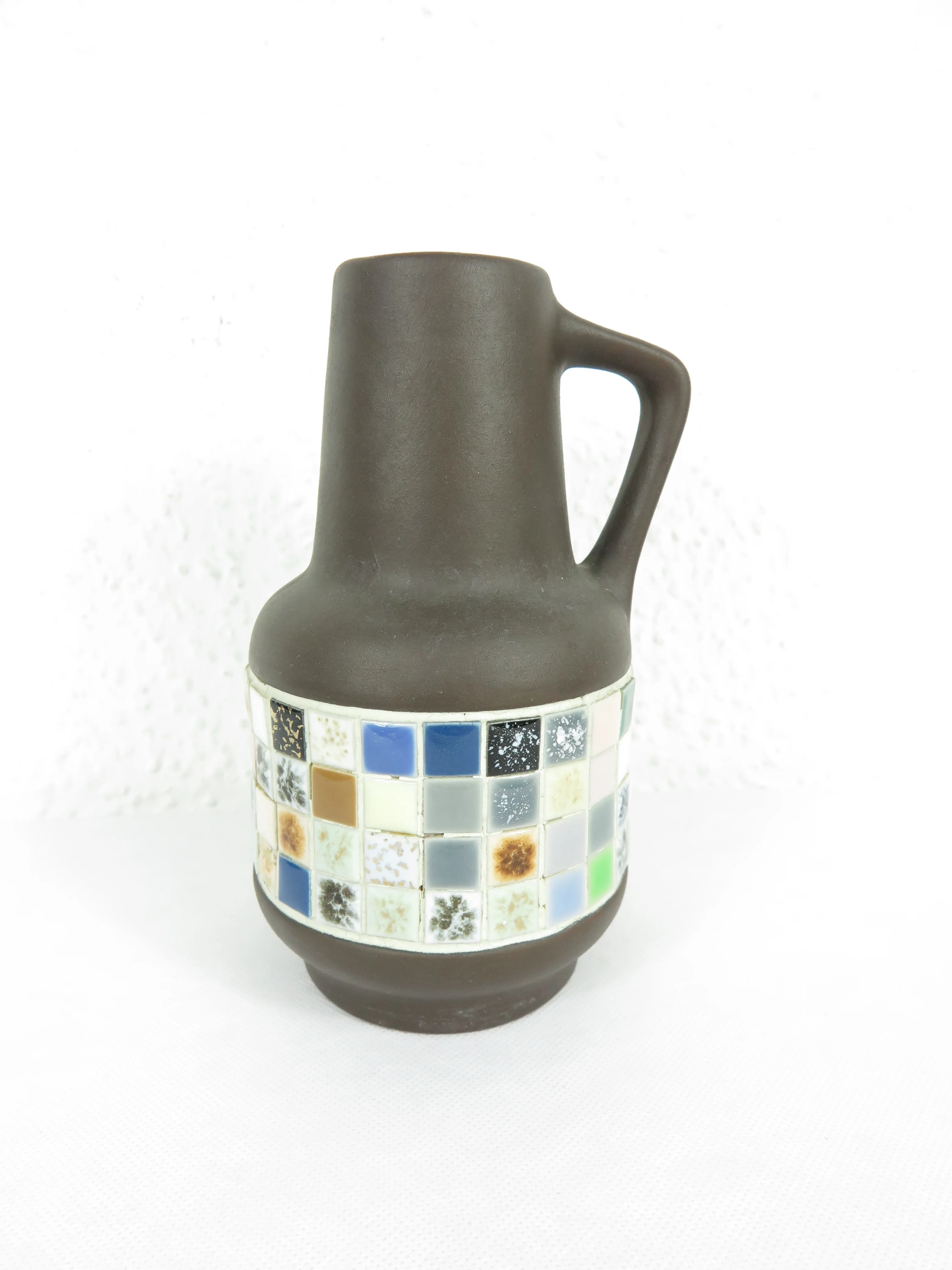Handmade original vintage ceramic vase with mosaic stones
