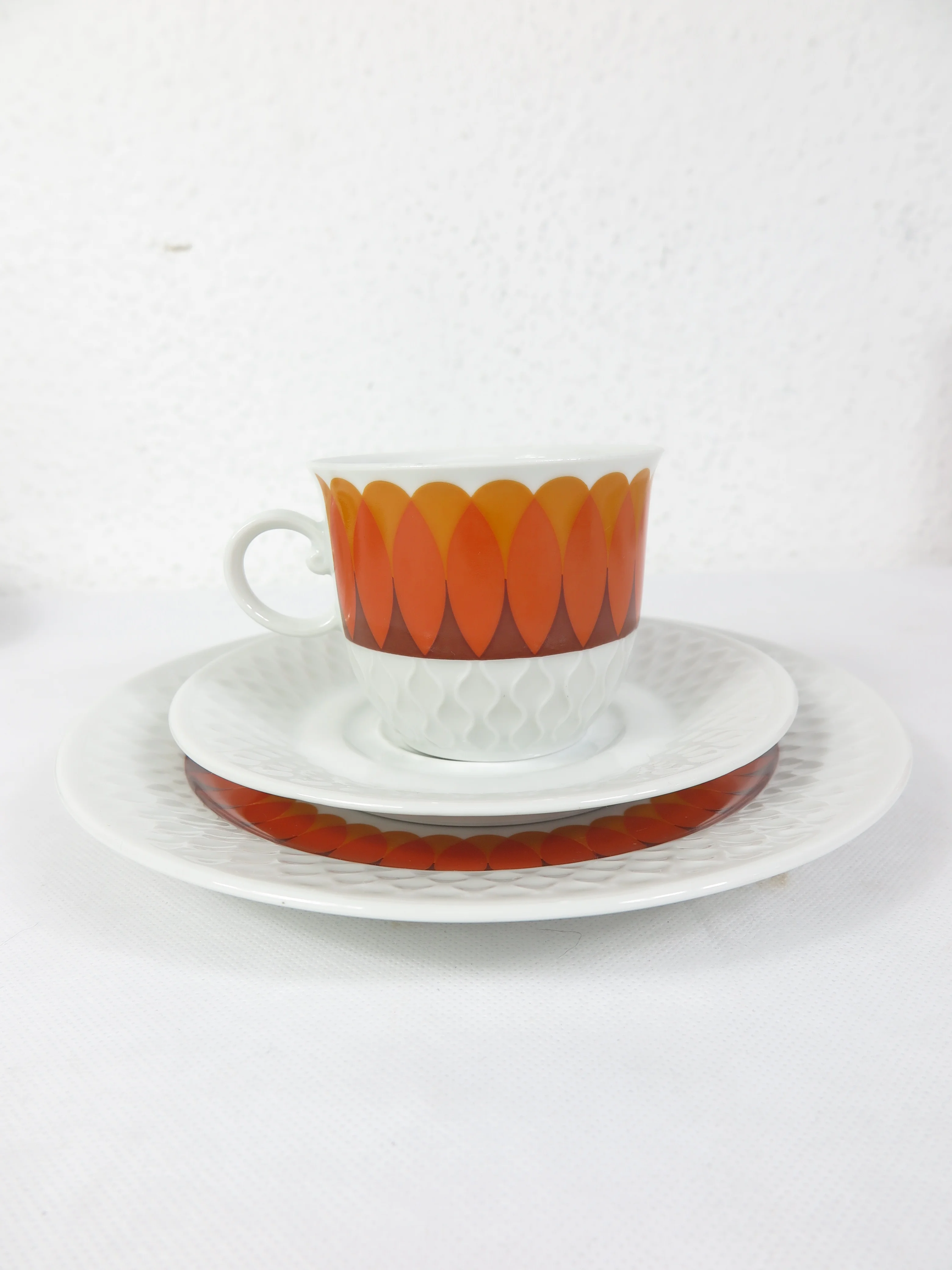 The service includes 6 cake plates, 6 coffee cups with saucers, 1 milk jug and 1 sugar bowl.