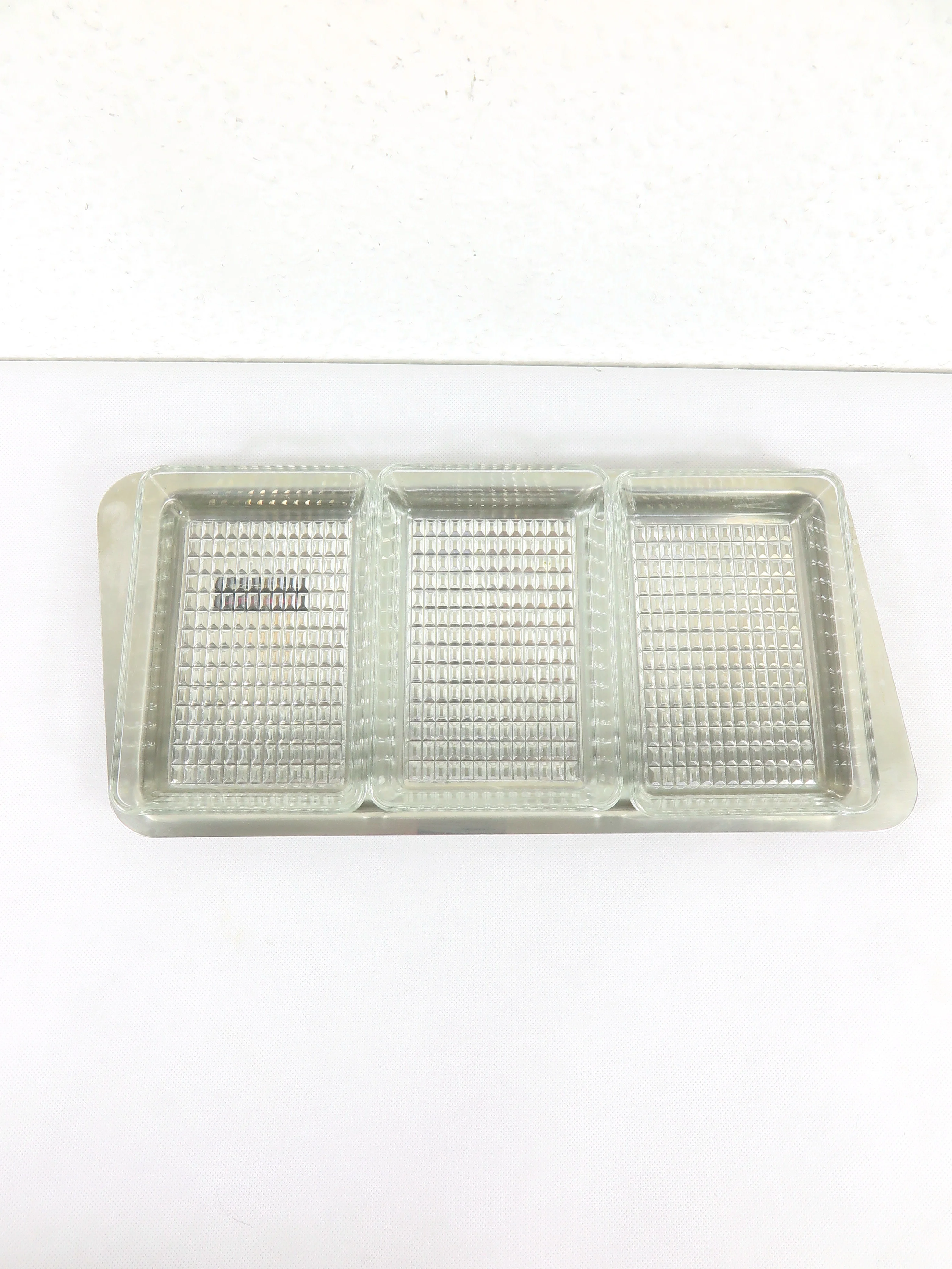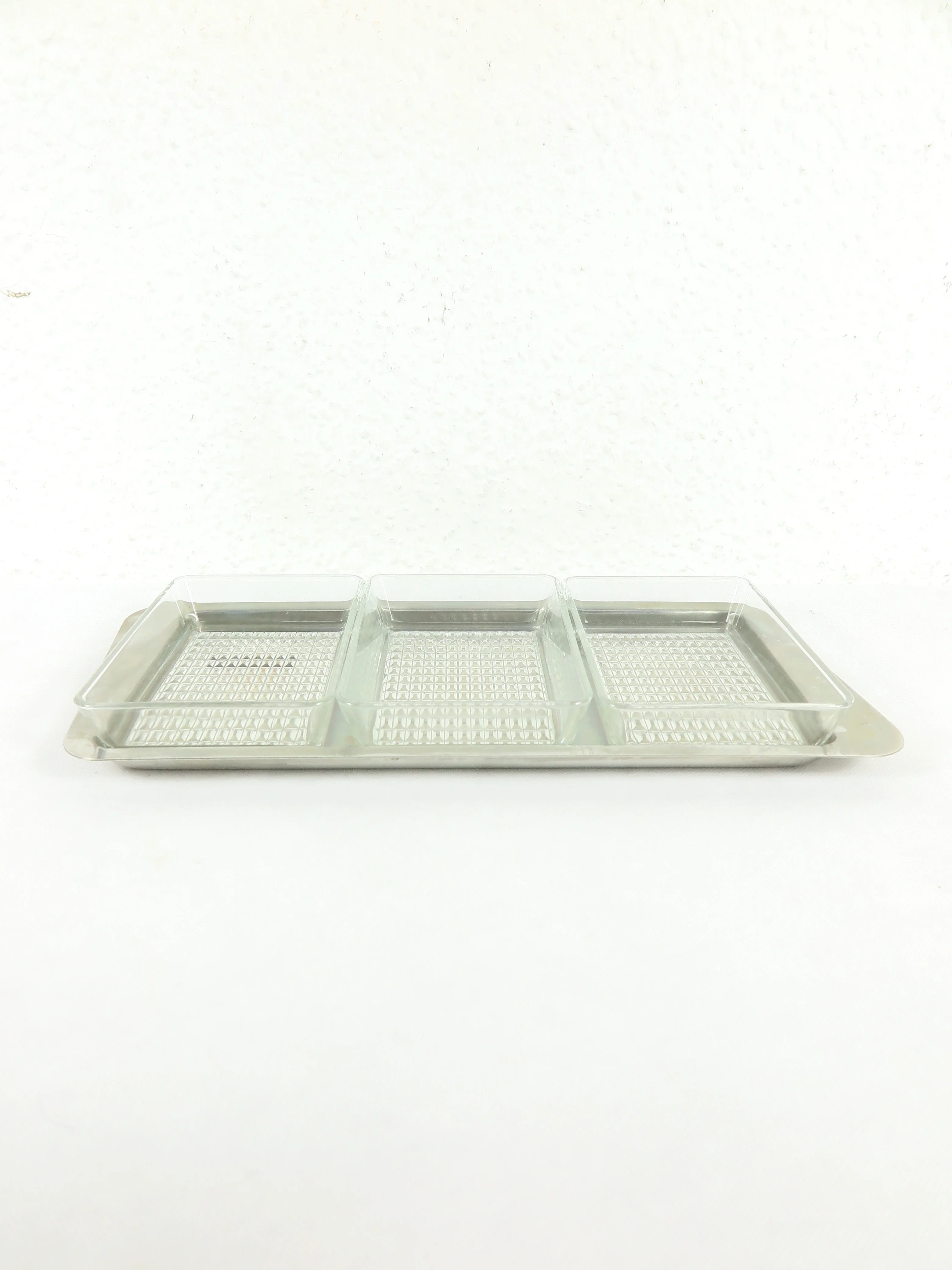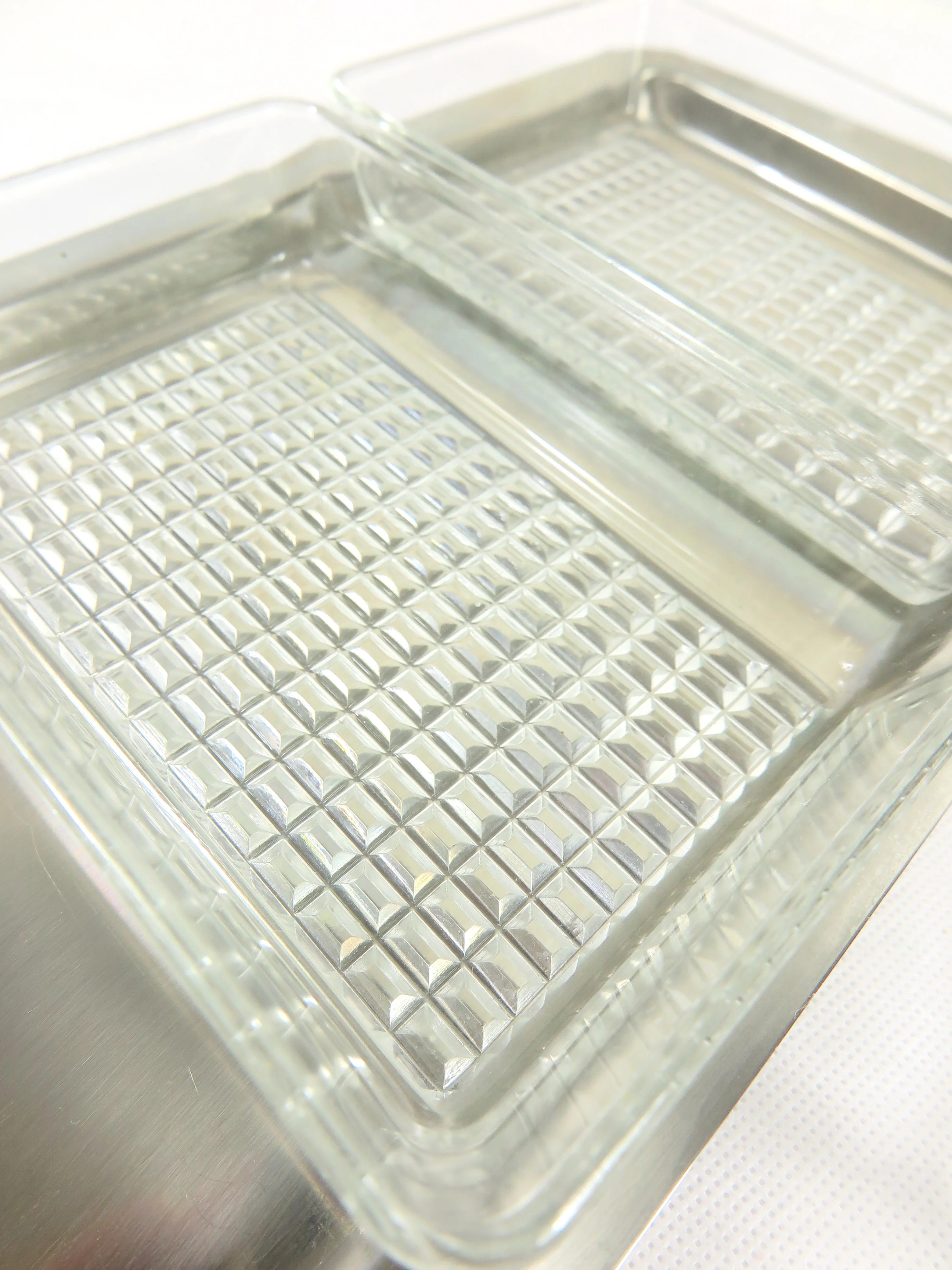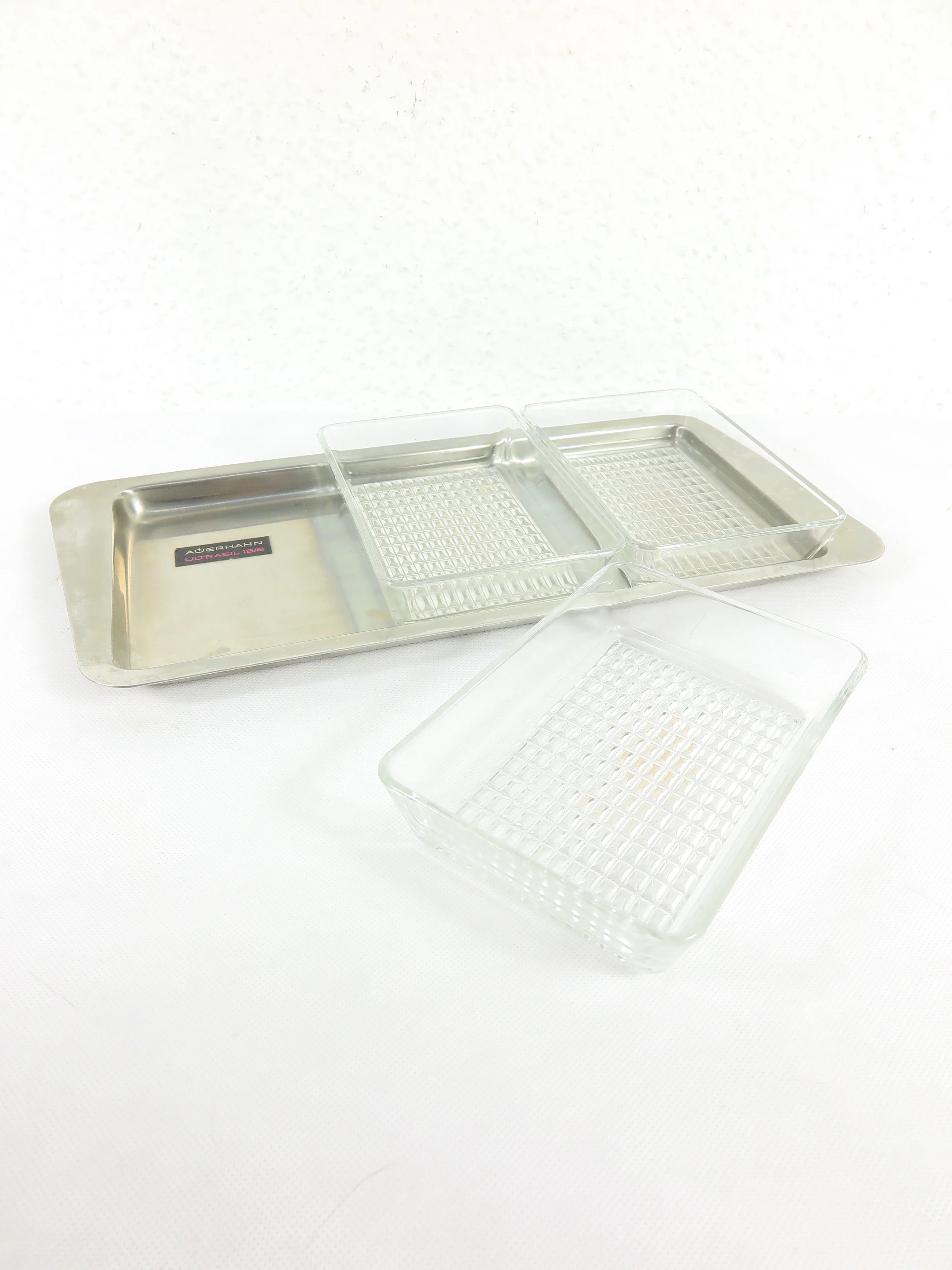 Coupelles en verre de style Wagenfeld sur plateau chromé