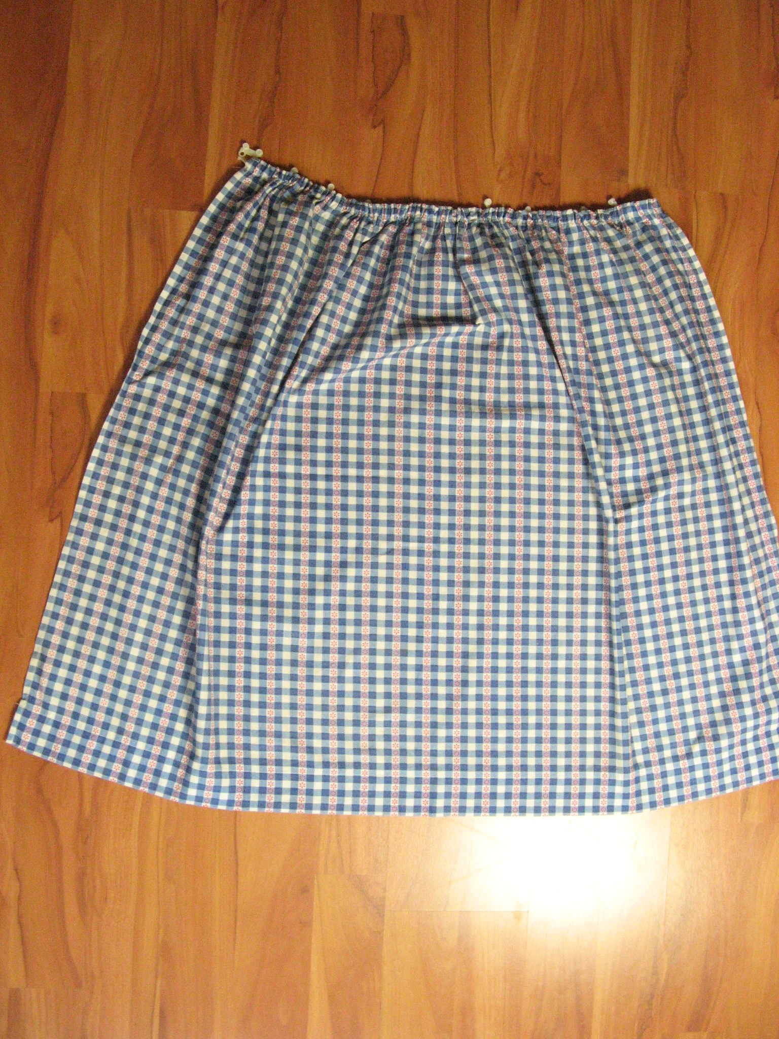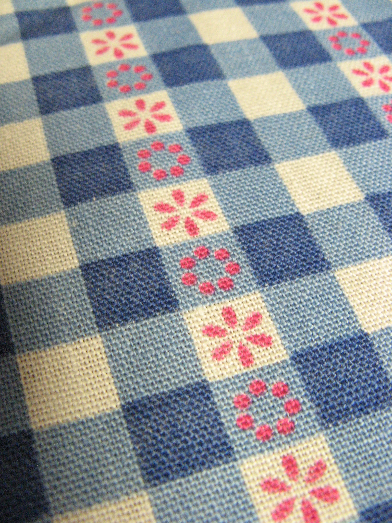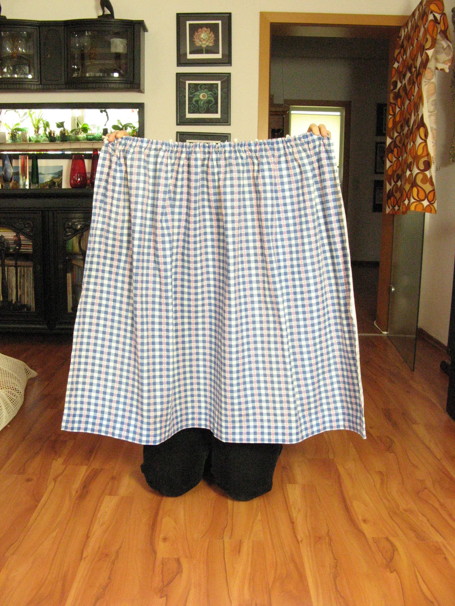 Jolis rideaux originaux des années 70 avec de petites fleurs rouges sur un motif à carreaux bleu/blanc