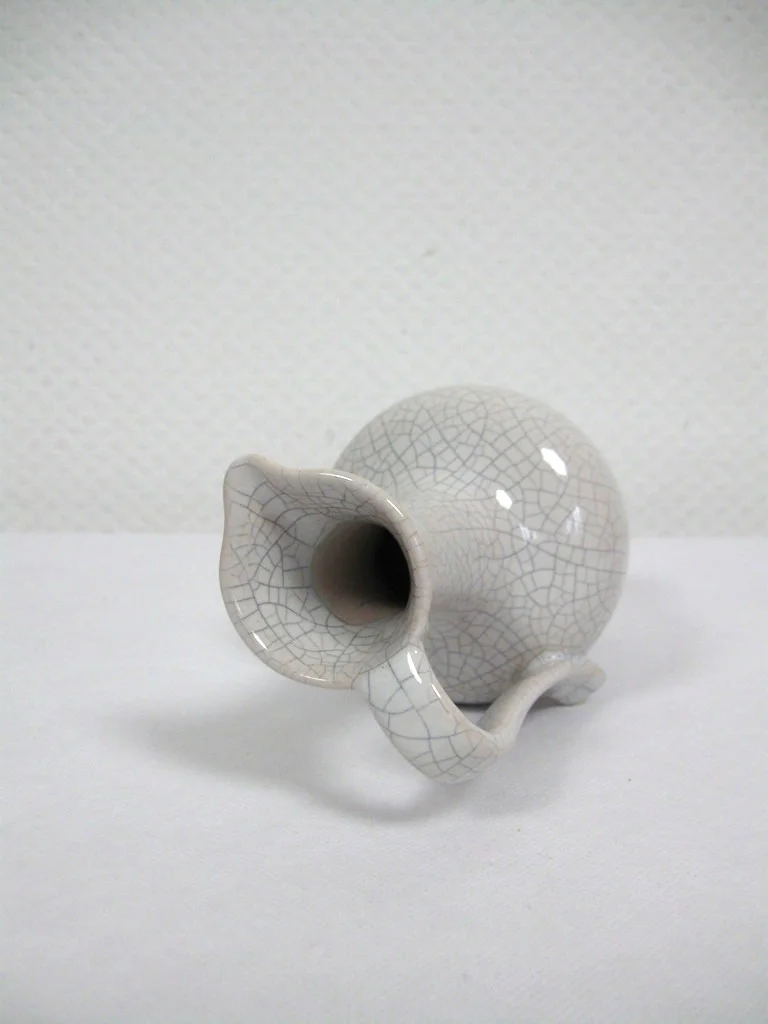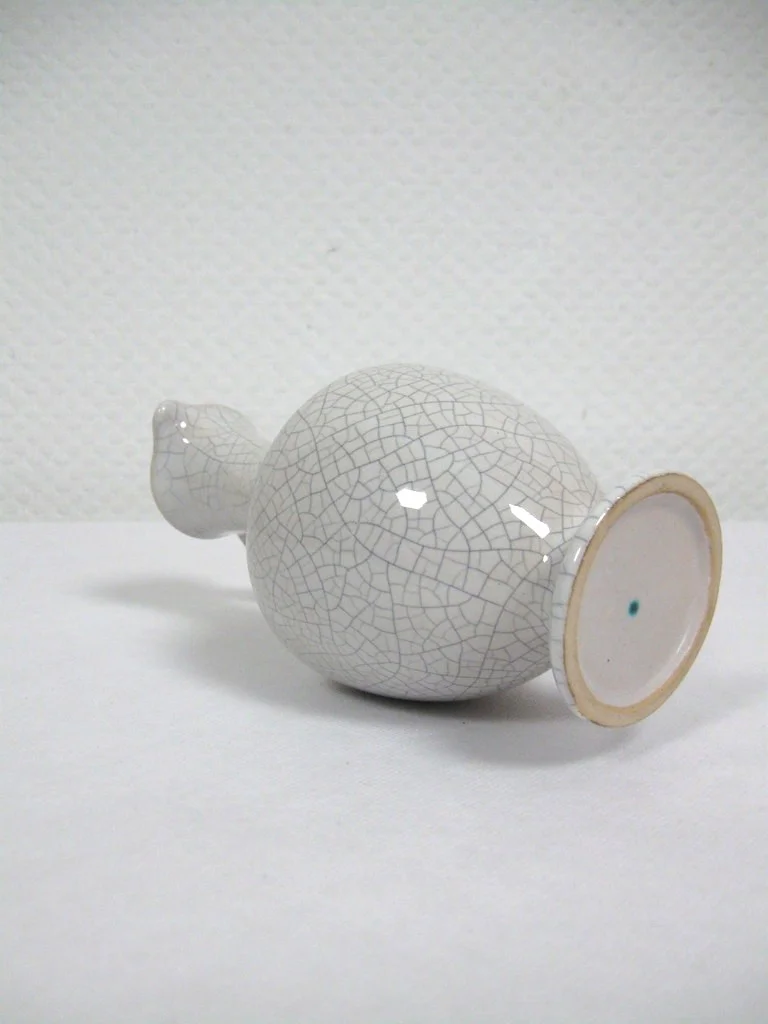 Le vase est en céramique émaillée et présente un design craquelé.