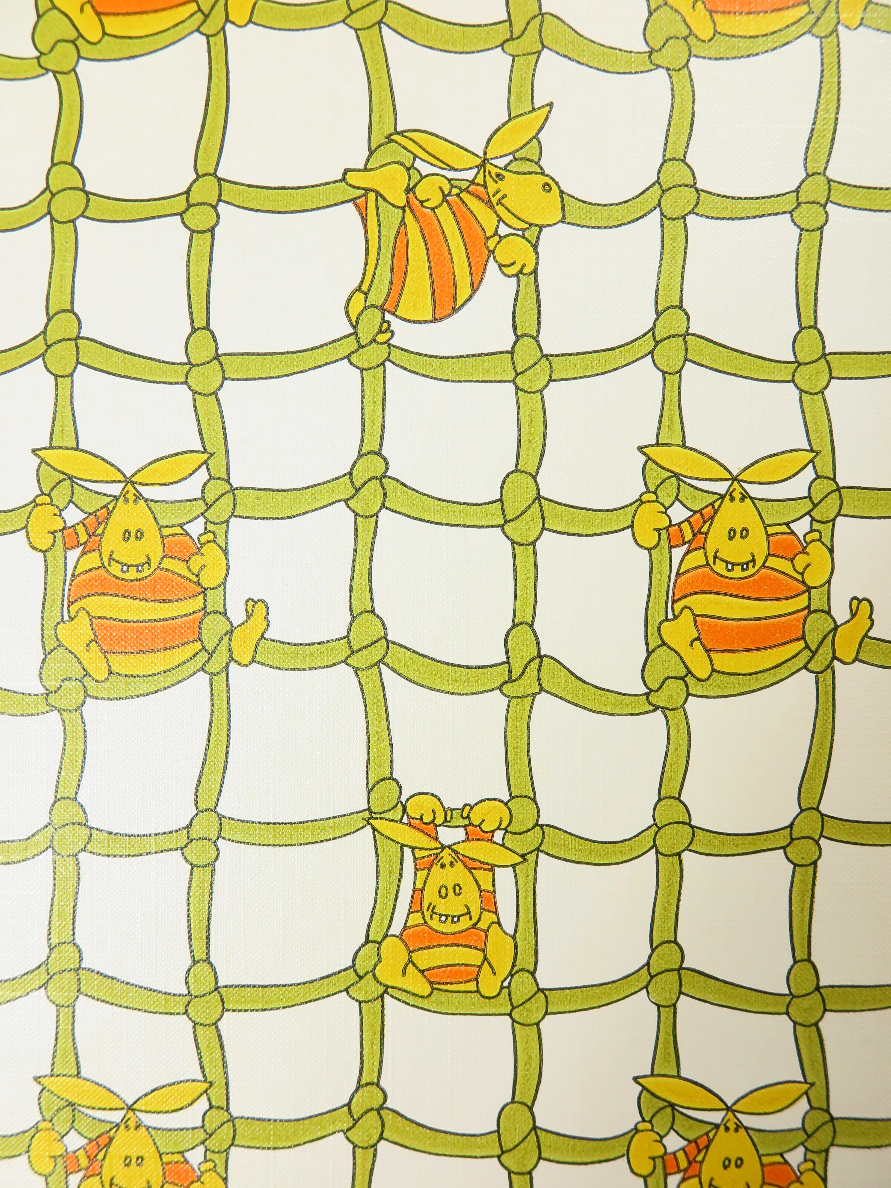 登れるウサギやうさ耳をつけたサルが描かれた70年代のオリジナル壁紙 :)