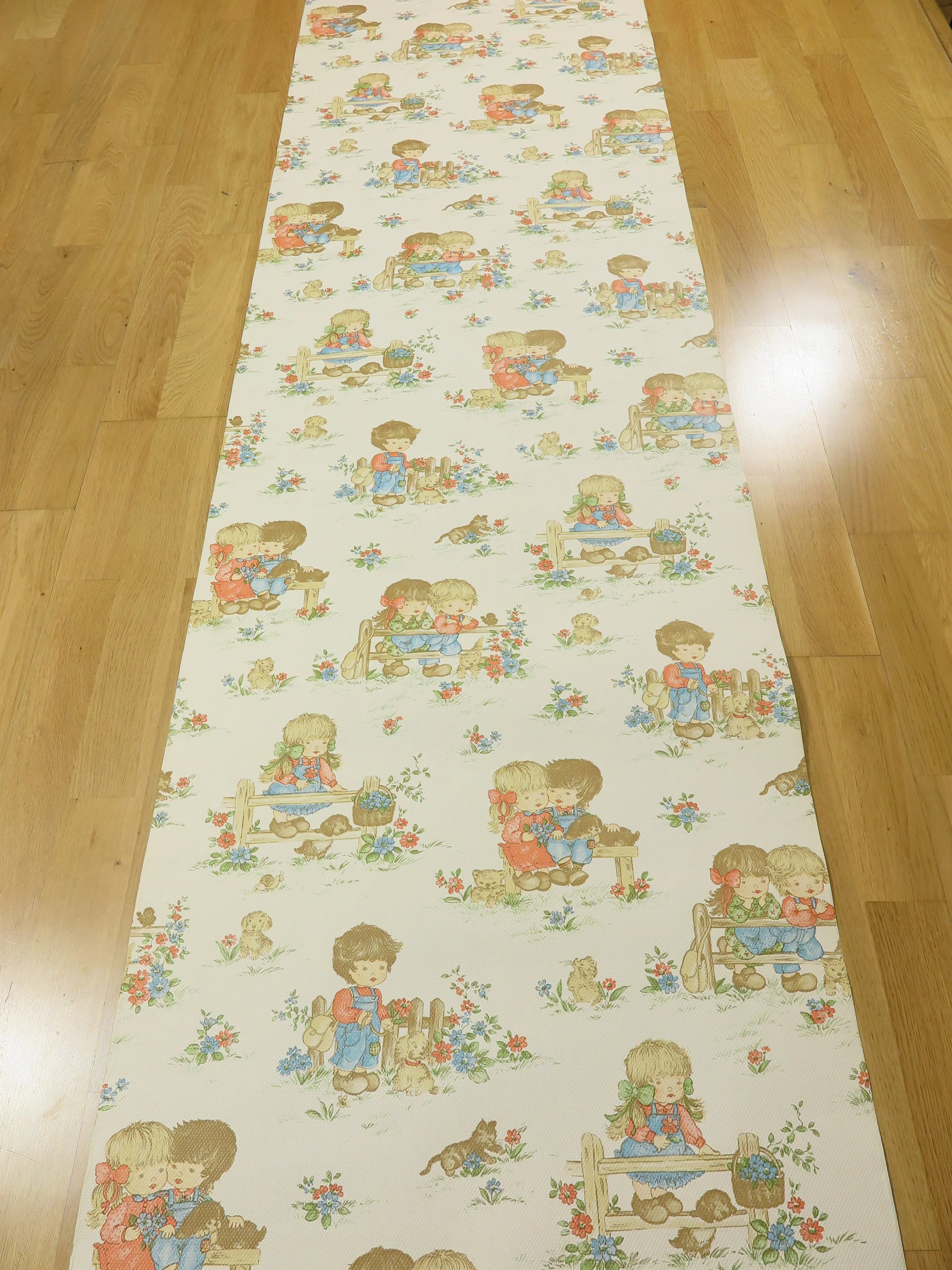 細かいエンボス加工の子供用壁紙は光沢がなく、子供部屋をモチーフにしている。